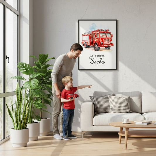 Affiche Prénom Pompier – Le Camion Personnalisé des Petits Héros