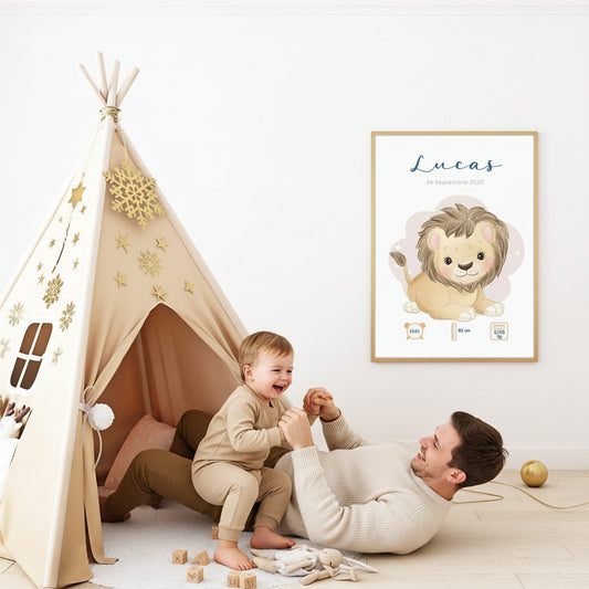 Affiche Naissance Personnalisée Lion - Souvenir Bébé