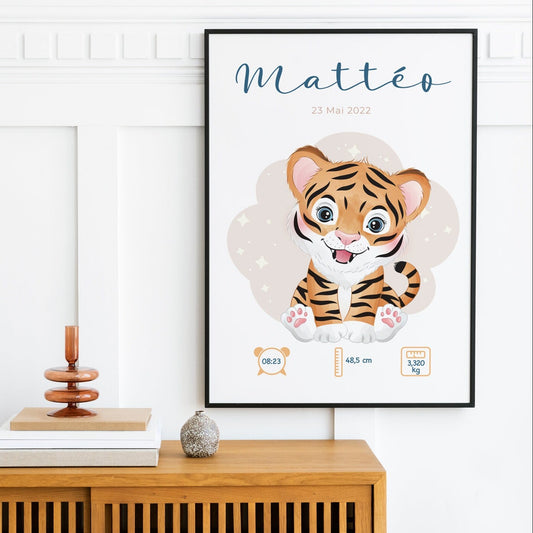 Affiche Naissance Personnalisée Tigre - Souvenir Bébé
