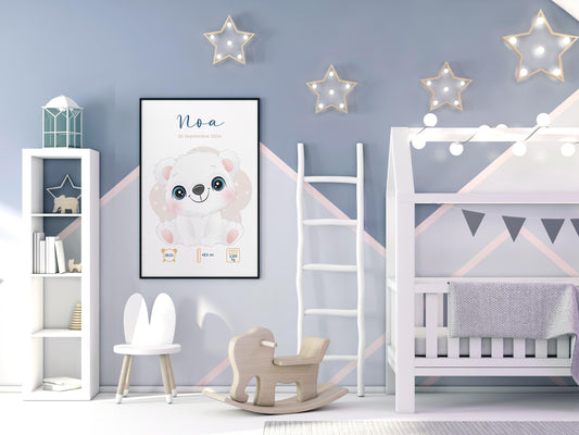 Affiche Naissance Personnalisée 'Ours polaire' - Souvenir chambre Bébé