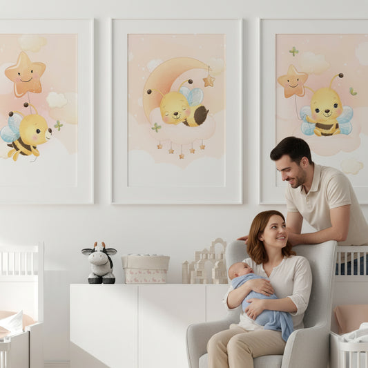 Posters Cute bee illustration - baby children's room - Girl decoration - Birth gift idea - Animal theme - bee cute - A4 A3
