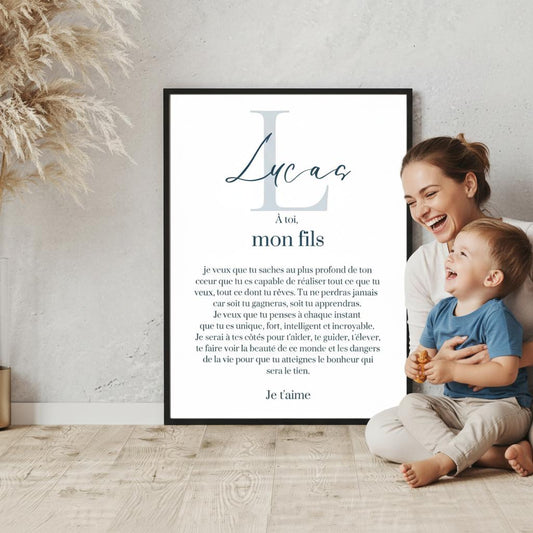 Affiche "lettre à mon enfant" "à mon fils" dire je t'aime avec ce poster motivation et affirmation positive