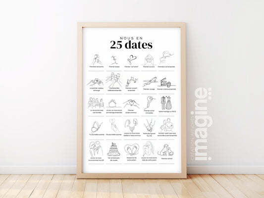 Affiche "Nous en 25 Dates" – Souvenirs uniques pour célébrer votre histoire d'amour