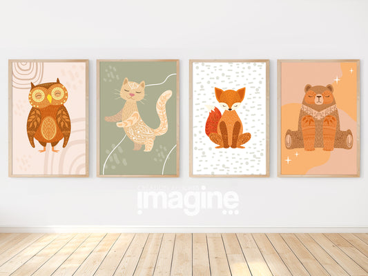 Animal posters owl fox bear cat - boho deco - baby room poster - boho wall frame - nature poster for children - design poster
