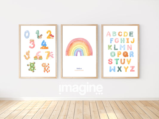 Triptyque Enchanteur pour Enfant - Abécédaire Coloré, Nombres & Arc-en-Ciel Personnalisé