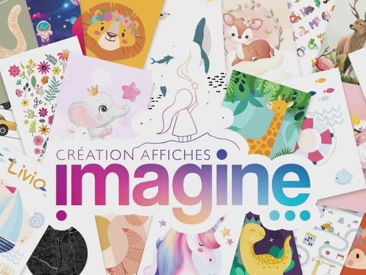 Deux affiches "Sirène et hippocampe" pour petite fille avec personnalisation avec prénom de l'enfant