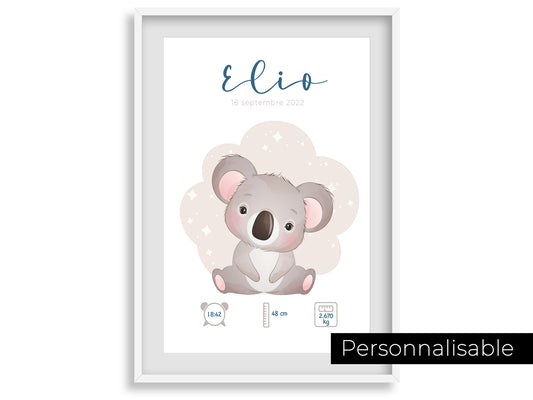 Poster initial letter first name date of birth customizable bluish foliage pattern