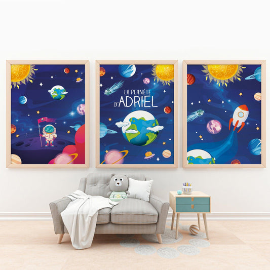 Space posters personalized children's room - Decoration 3 posters boy girl - Space - Gift idea Astronaut Cosmonaut Printing A4 A3