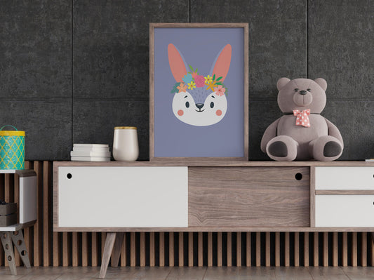 Affiche lapin Animaux portrait romantique à fleurs