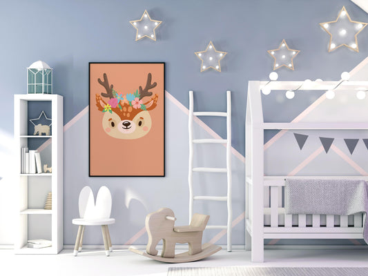 Affiche cerf Animaux portrait romantique avec couronne de fleurs