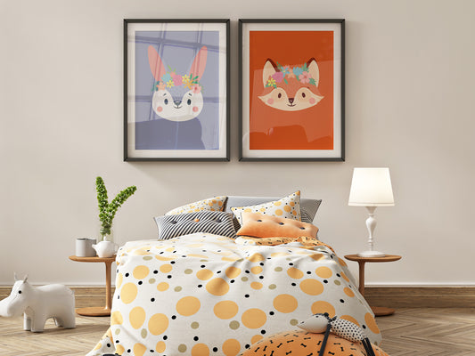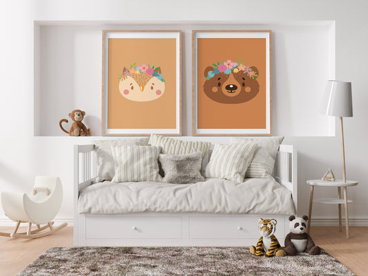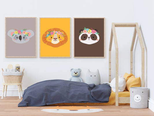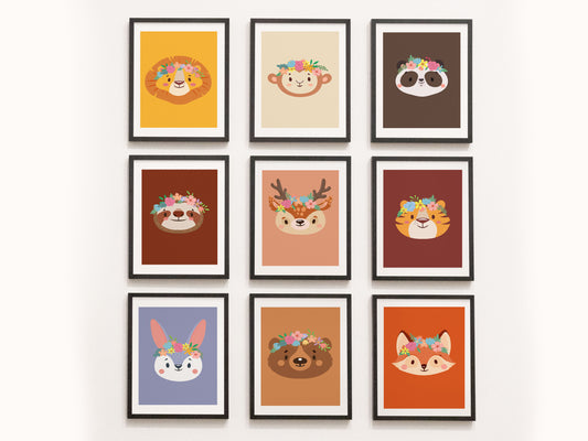 Romantic flower animal poster - deer rabbit lion panda koala bear fox forest jungle savannah - child girl boy - bedroom poster decoration