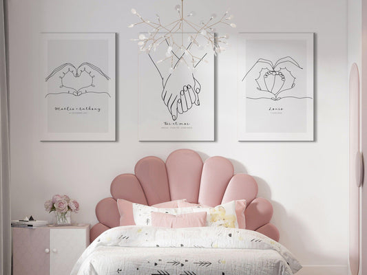 Customizable parent couple hand poster - Line art parents heart