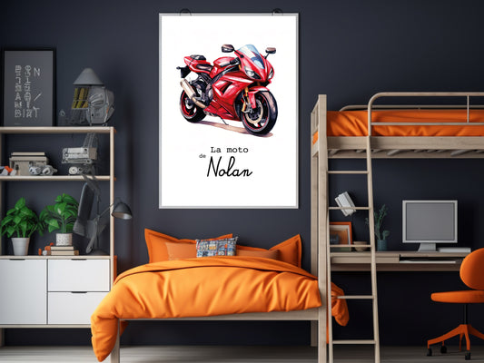 Affiche Personnalisée Moto rouge - La moto de {Prénom de l'Enfant}