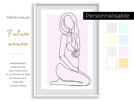 Customizable pregnant mom poster - Line art mom baby - Modern and design living room decoration - Mother's Day - Birth gift