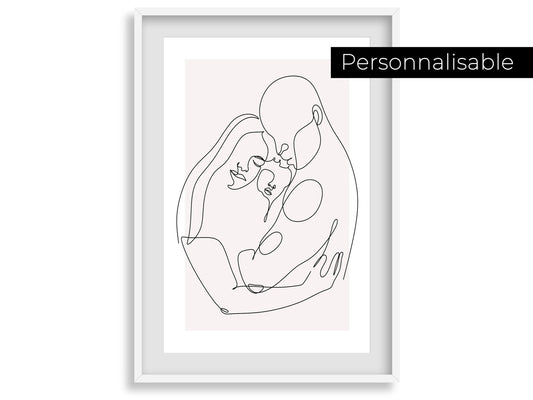 Customizable family poster - Line art mom dad baby