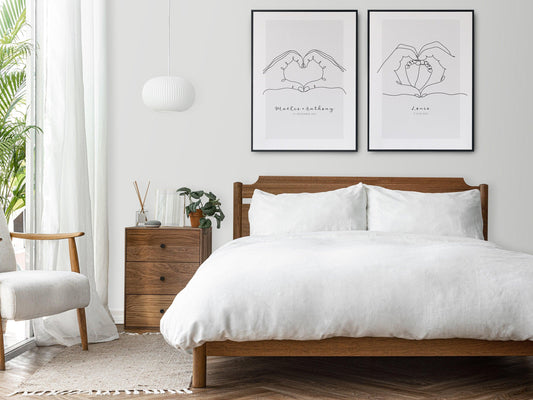 Customizable baby feet heart hand poster - Line art parents baby feet