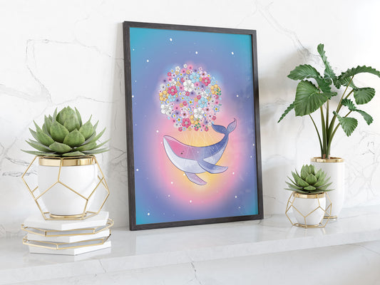 Baleine magique dans l'océan ciel étoilé