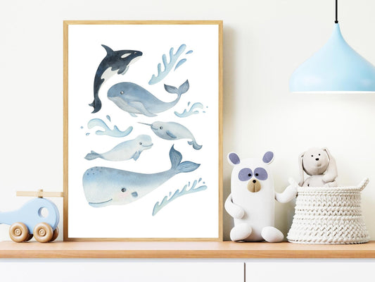 Whale ray turtle ocean shell - baby children's room - 3 posters Decoration - birth birthday gift idea - sea - bb ocean