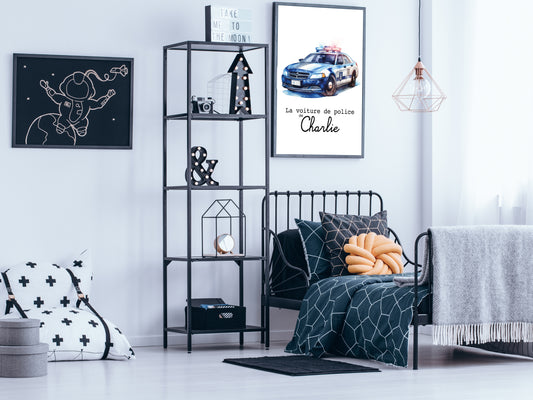 Affiche Personnalisée voiture de police - La voiture de police de {Prénom de l'Enfant} pour les petits fans de policier