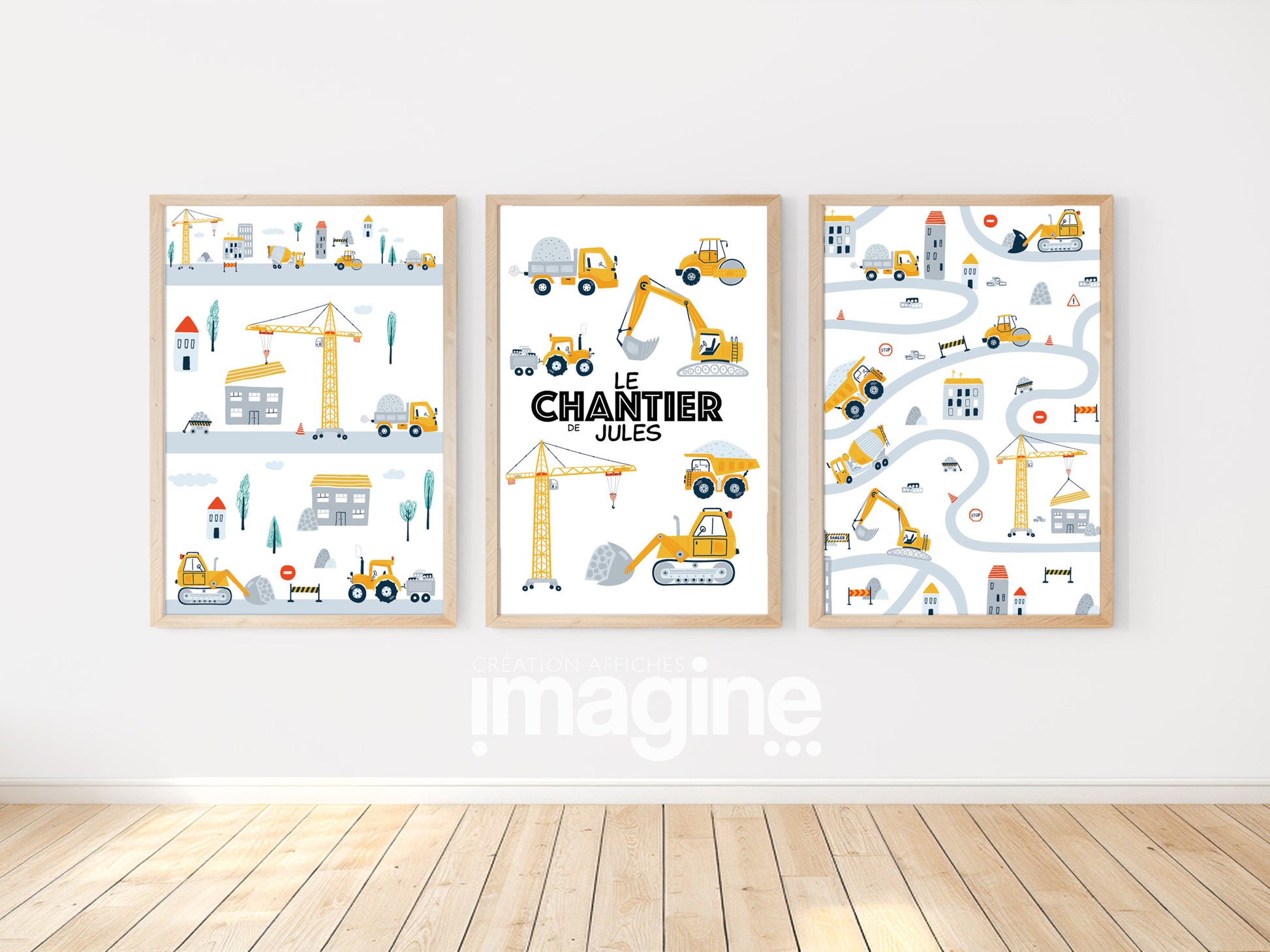 Discover the set "The construction site of..." composed of 3 posters on the theme of works to be personalized with the child's first name.