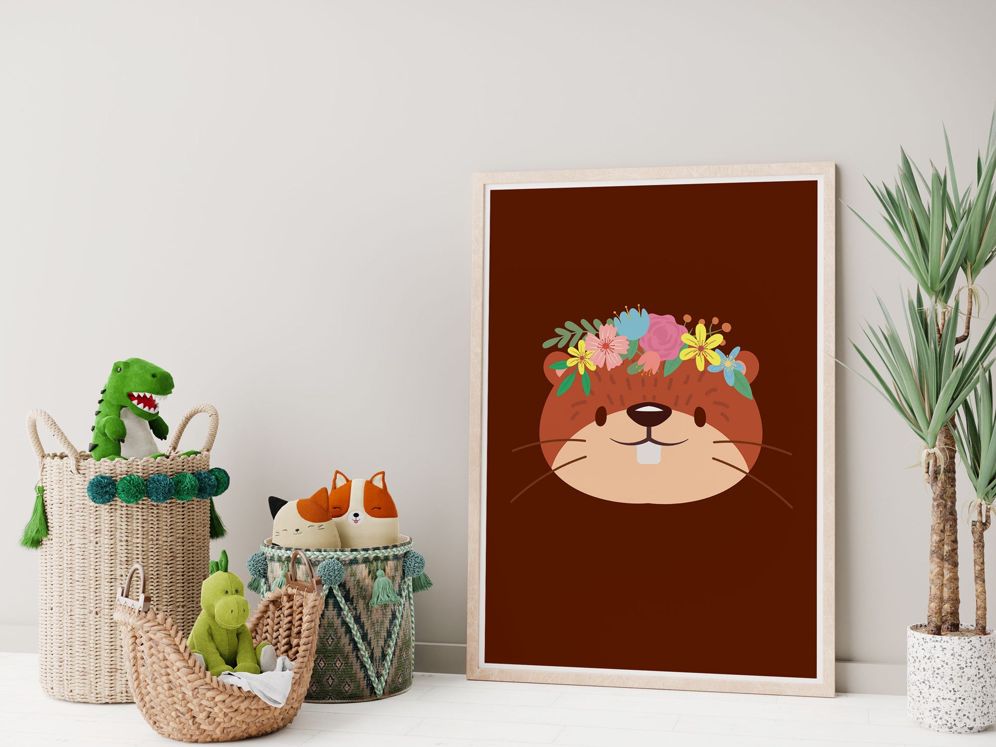 Un castor tout doux, rusé et romantique à la fois. Une affiche pour garçon ou fille dans des couleurs vives et chaleureuses pour une décoration unique. Composez vous-mêmes la décoration de la chambre ou de la salle de jeu de votre enfant / bebe.