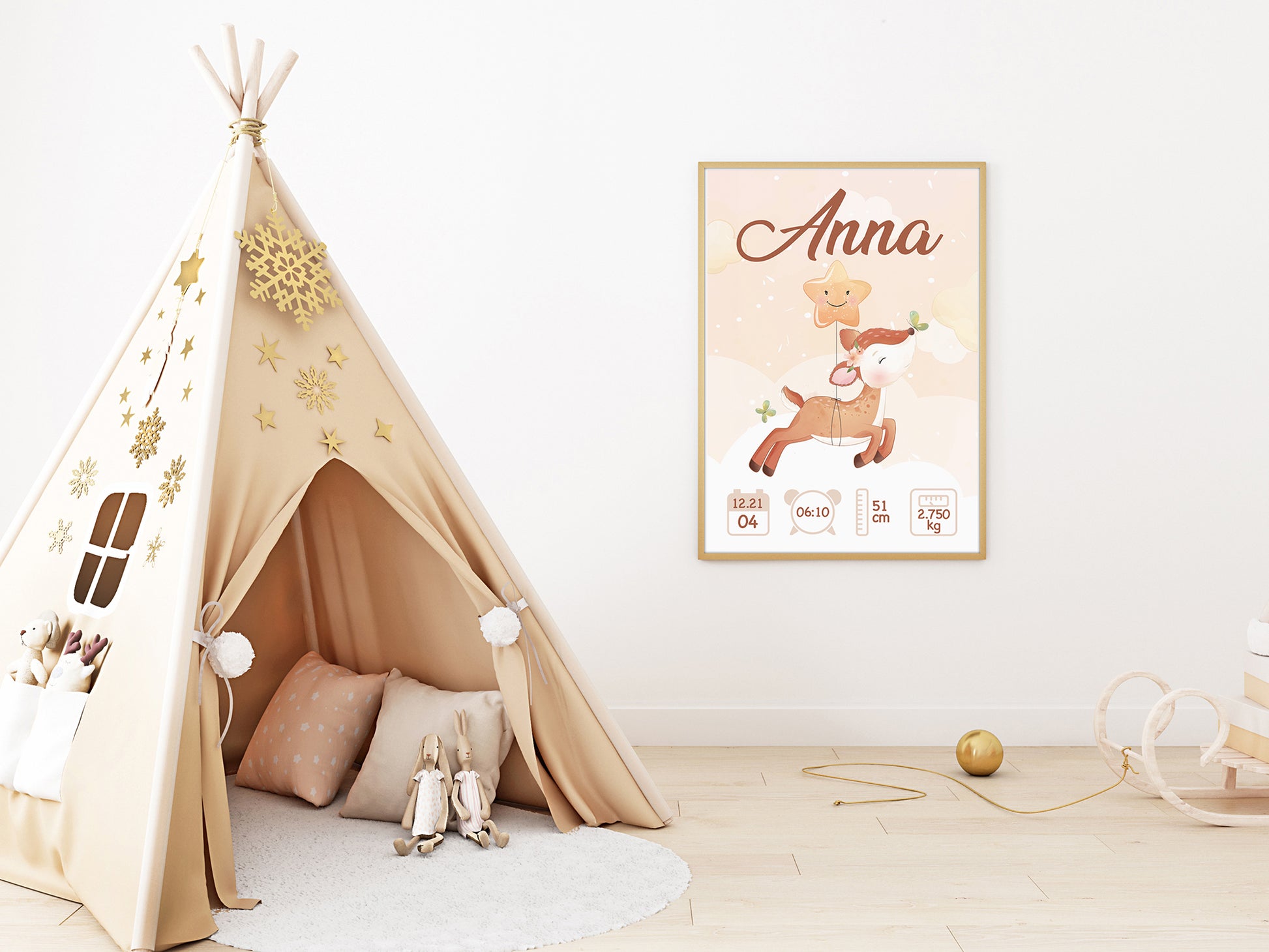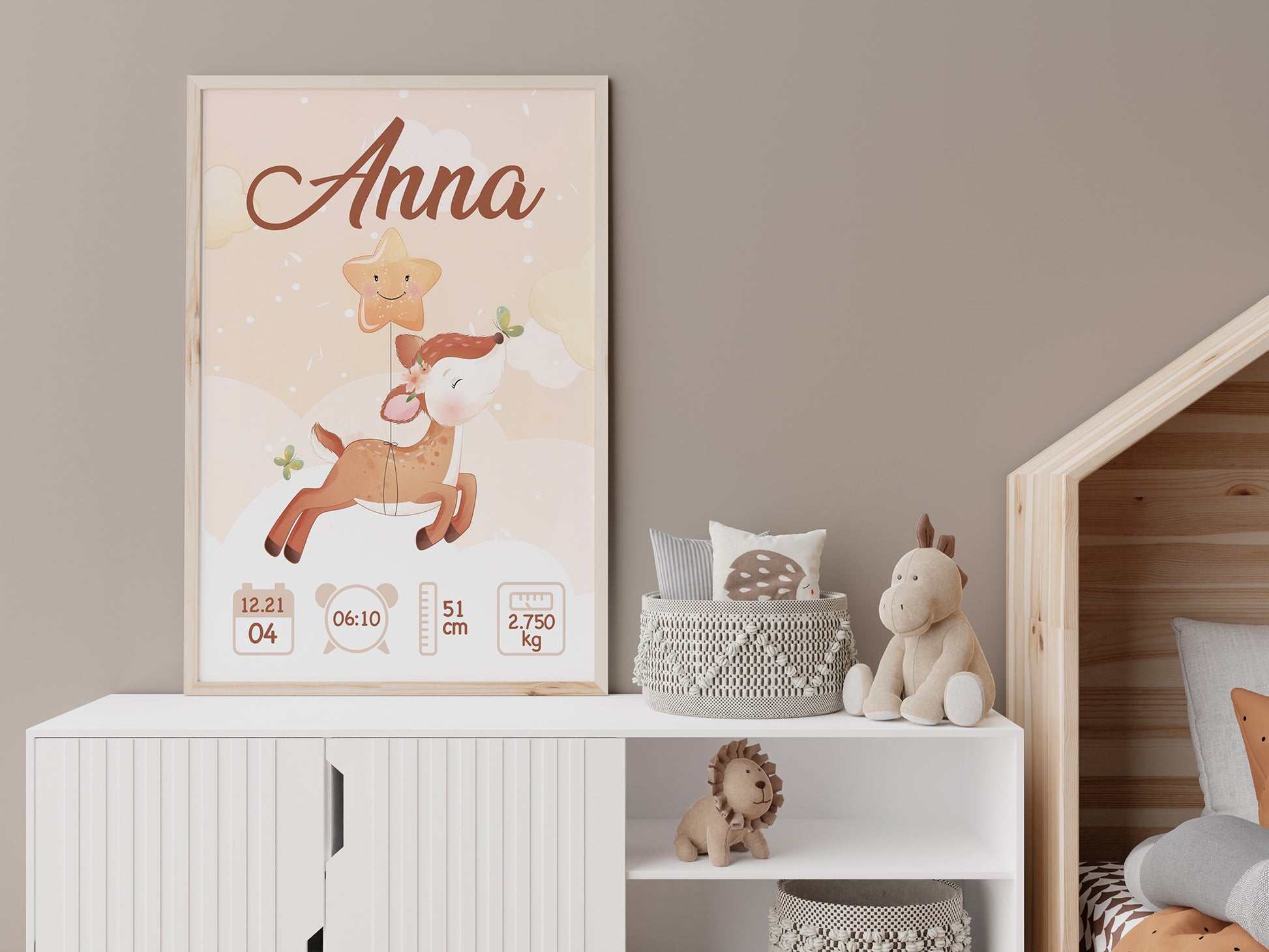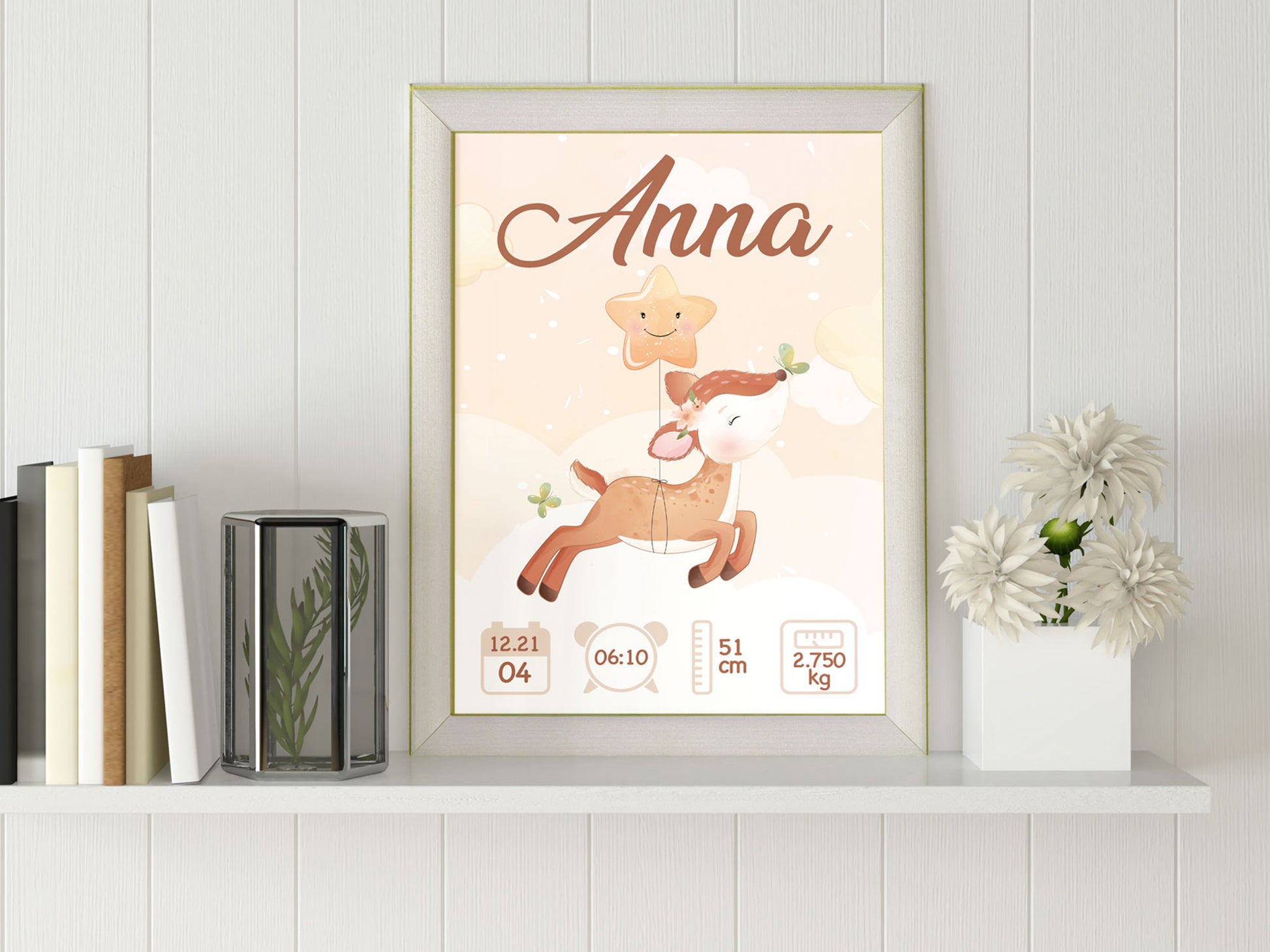 Offer a personalized birth poster for a unique gift that is sure to please. This little doe will delight all moms.