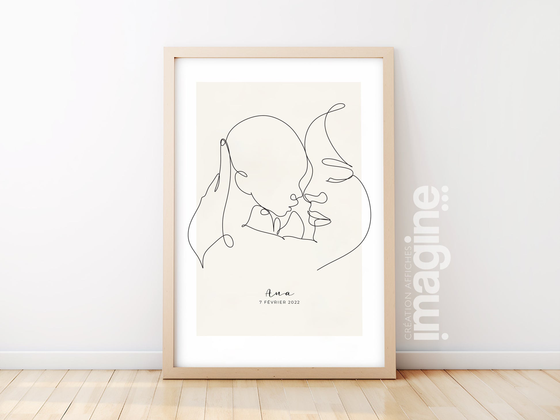 Customizable mom baby poster - Line art mom baby - Modern and design living room decoration - Mother's Day - Birth gift