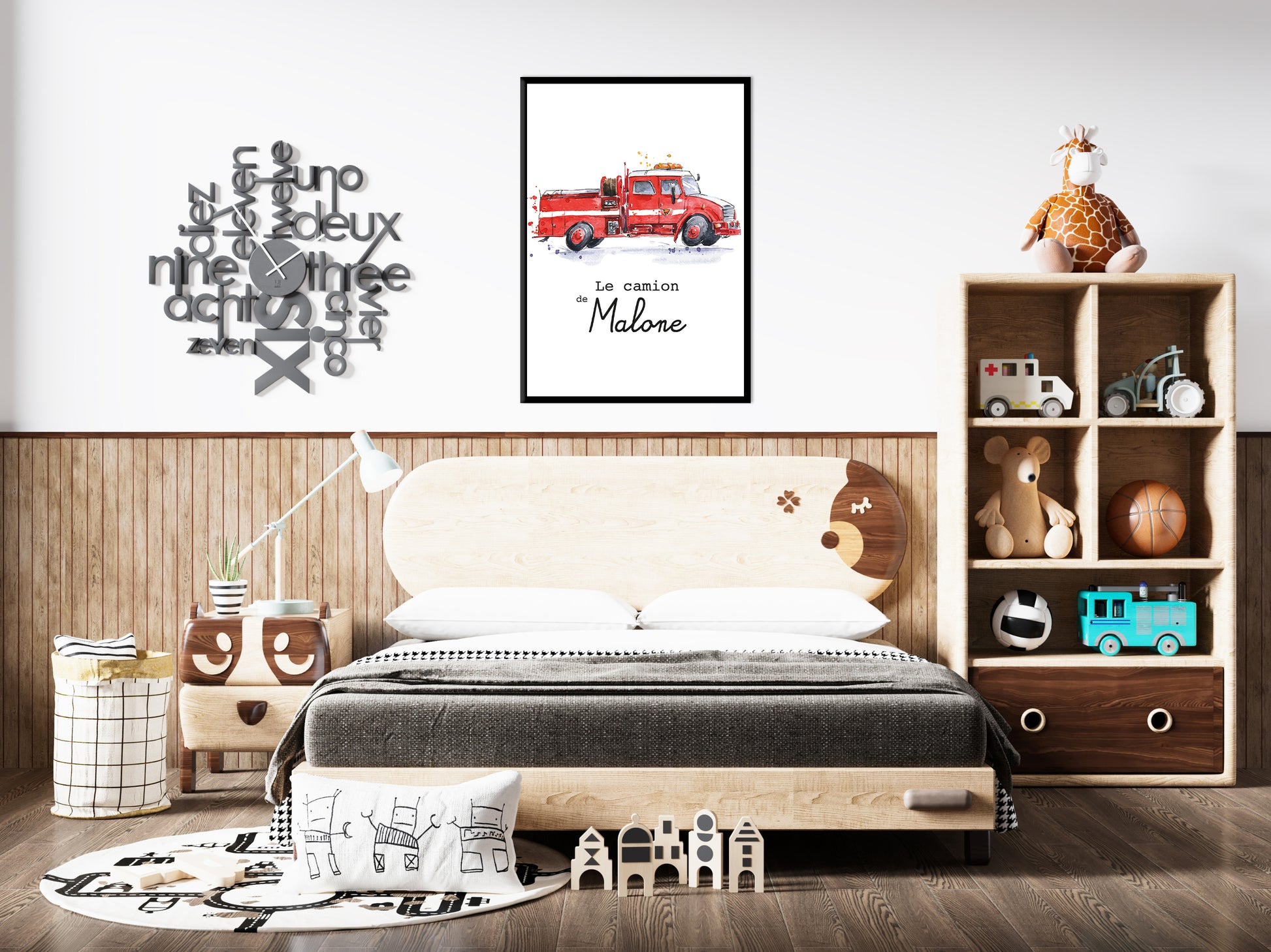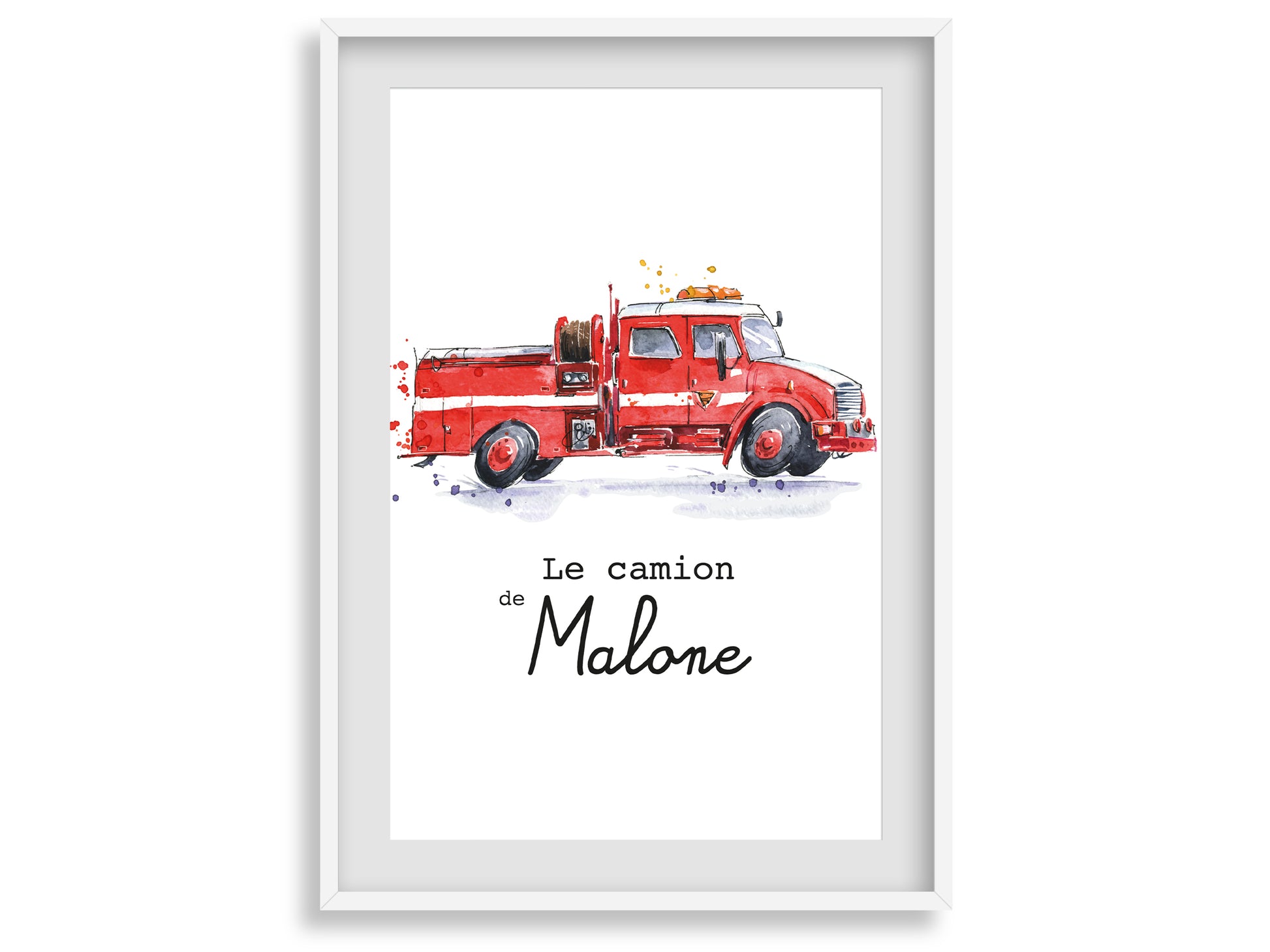 - Affiche personnalisée avec le prénom de votre enfant et un camion de pompier