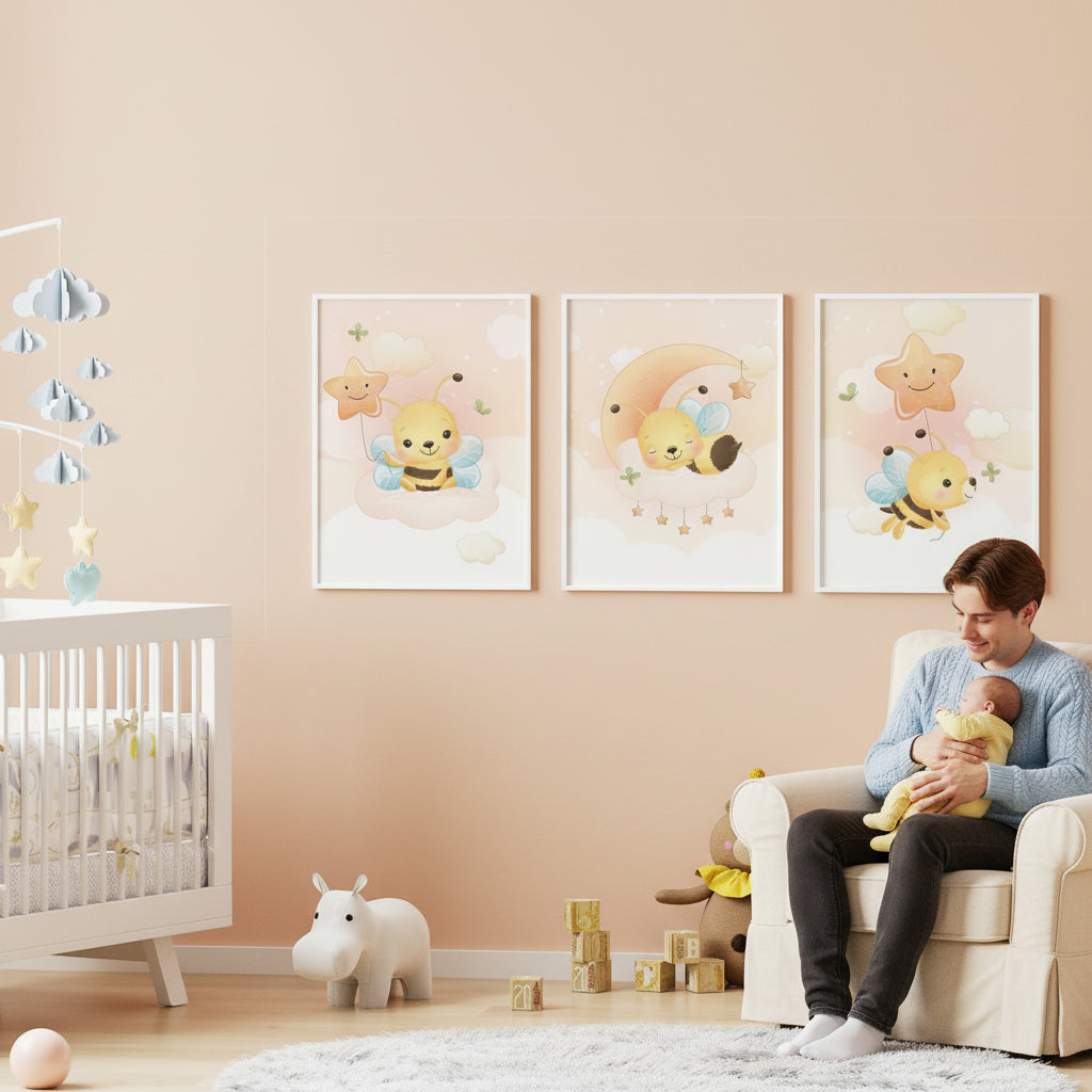 Discover a set of 3 posters in several sizes available with quality printing on thick 200gr paper, ideal for a wall frame or to put on a shelf. Perfect for a beautiful wall decoration in a child's/baby's room.