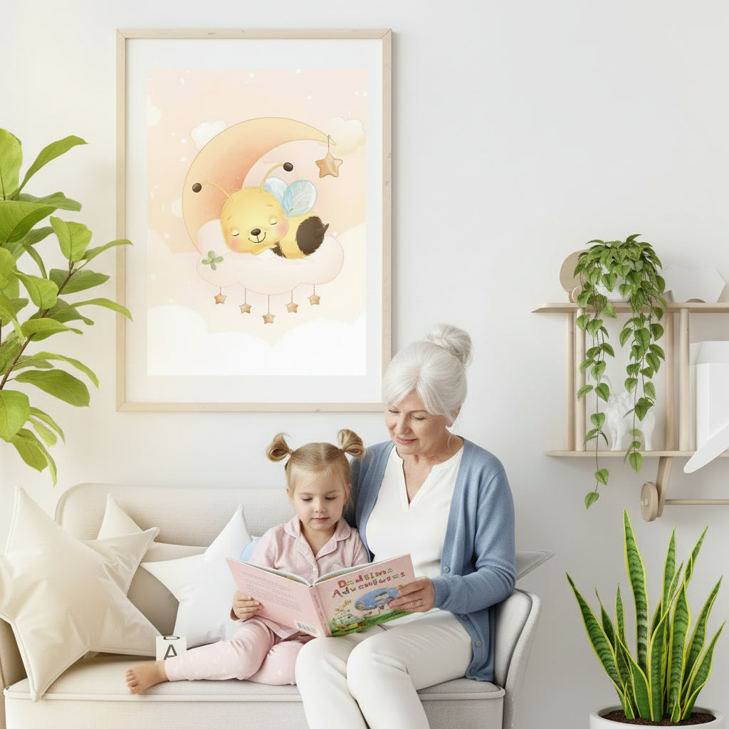 Posters Cute bee illustration - baby children's room - Girl decoration - Birth gift idea - Animal theme - bee cute - A4 A3