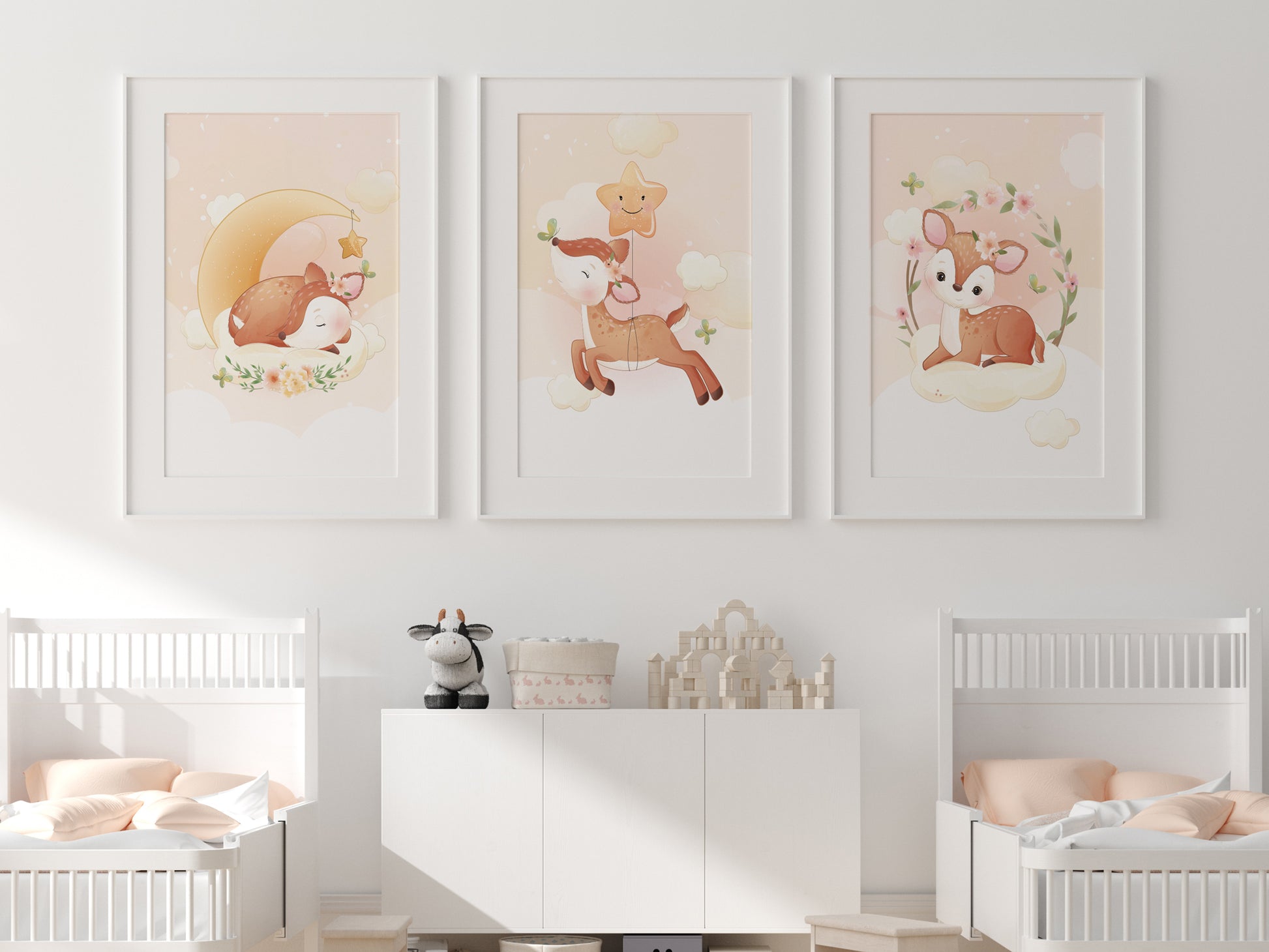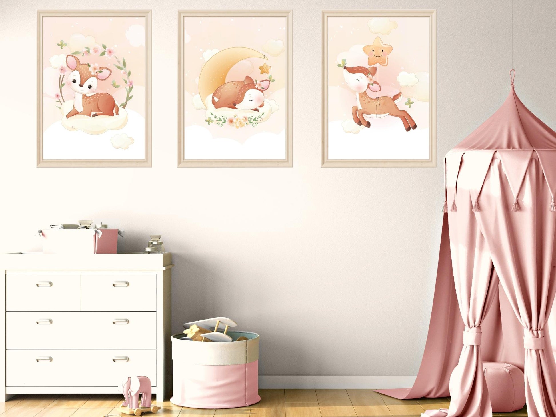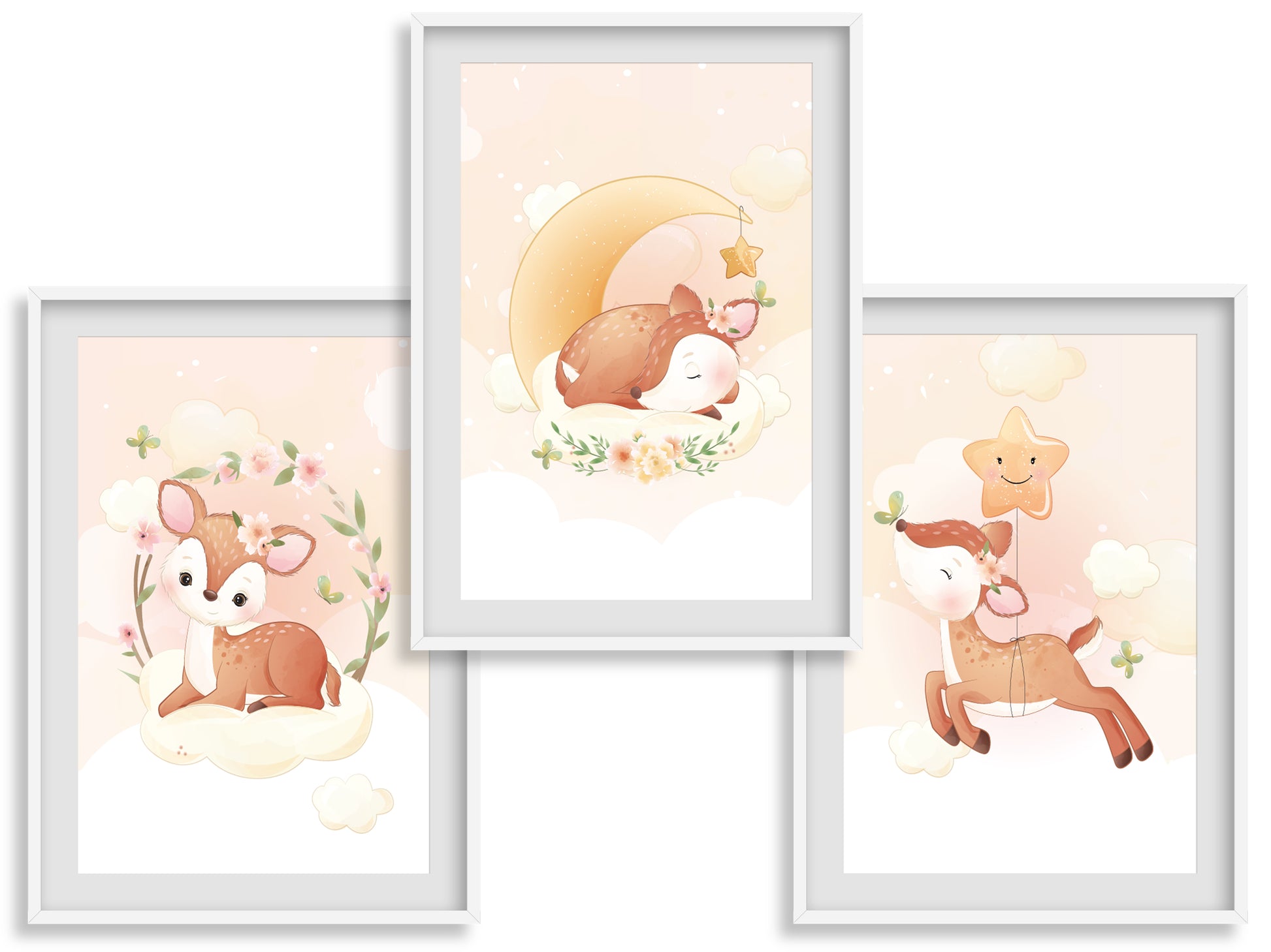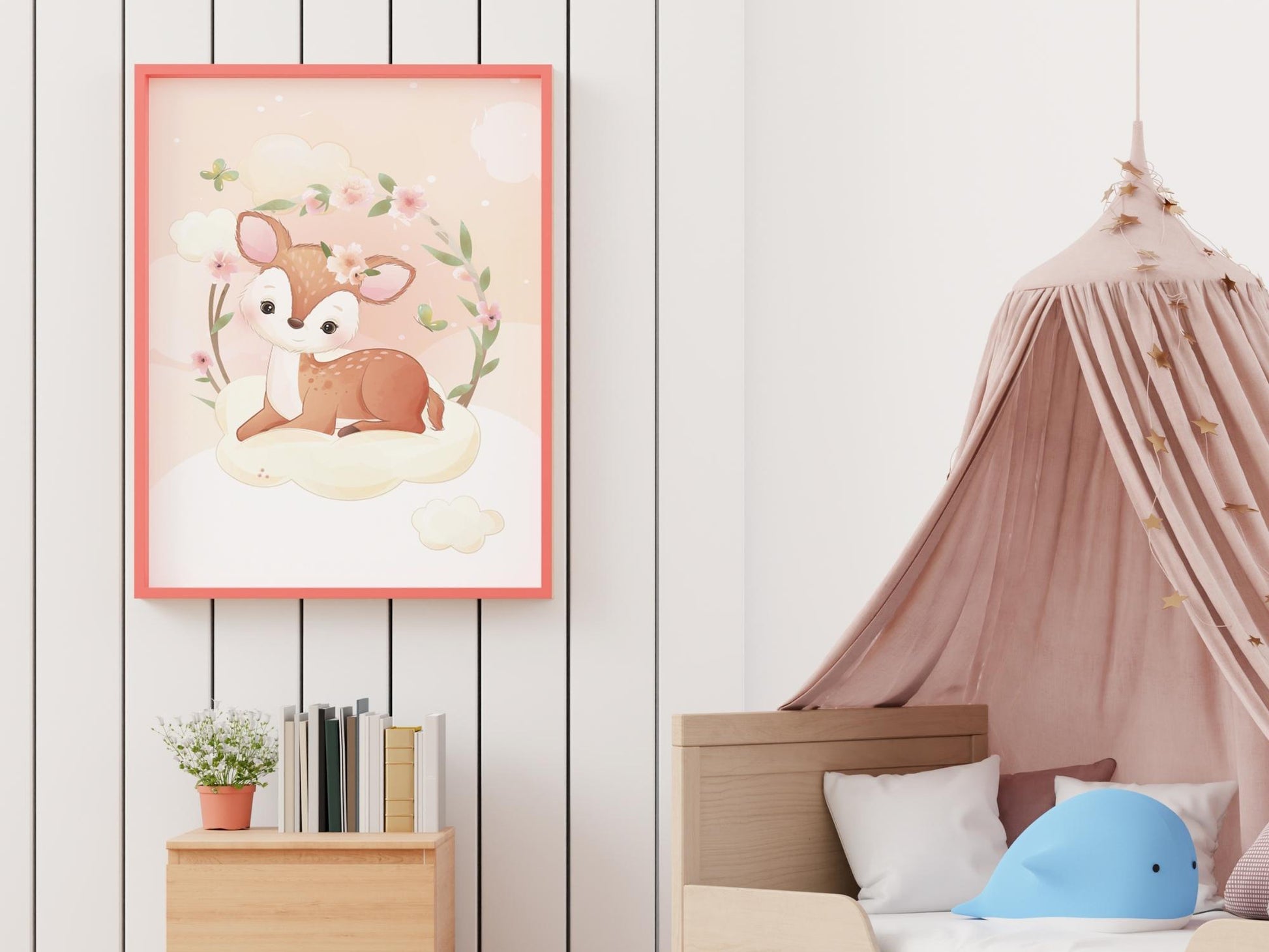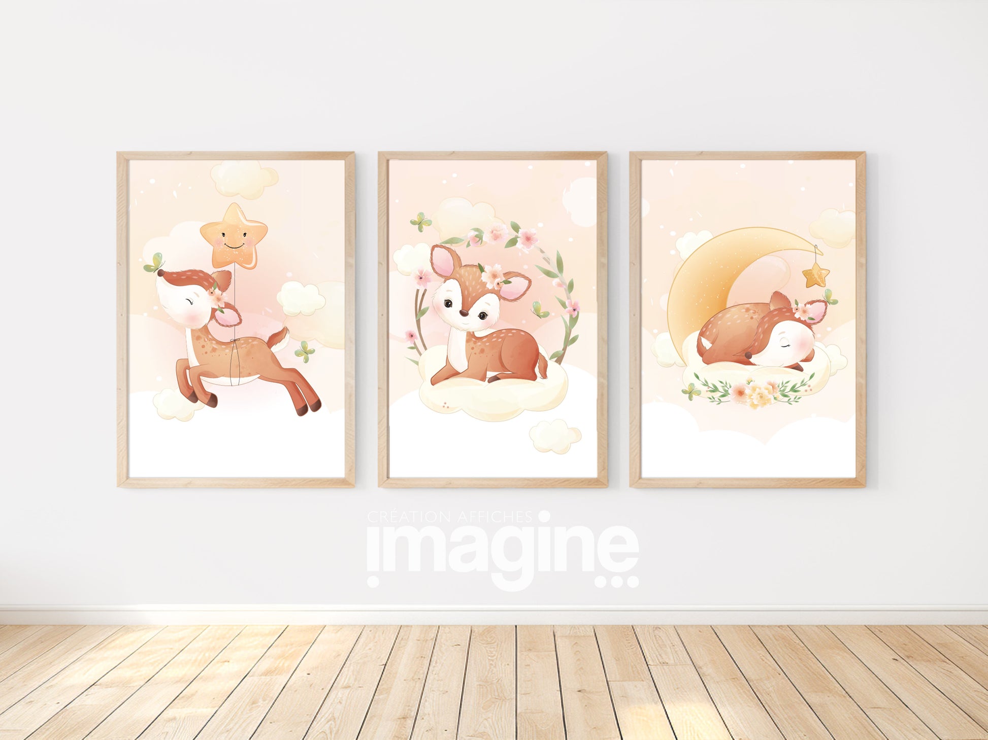 Posters Cute doe illustration - baby children's room - Girl decoration - Birth gift idea - Animal theme - A4 or A3 format