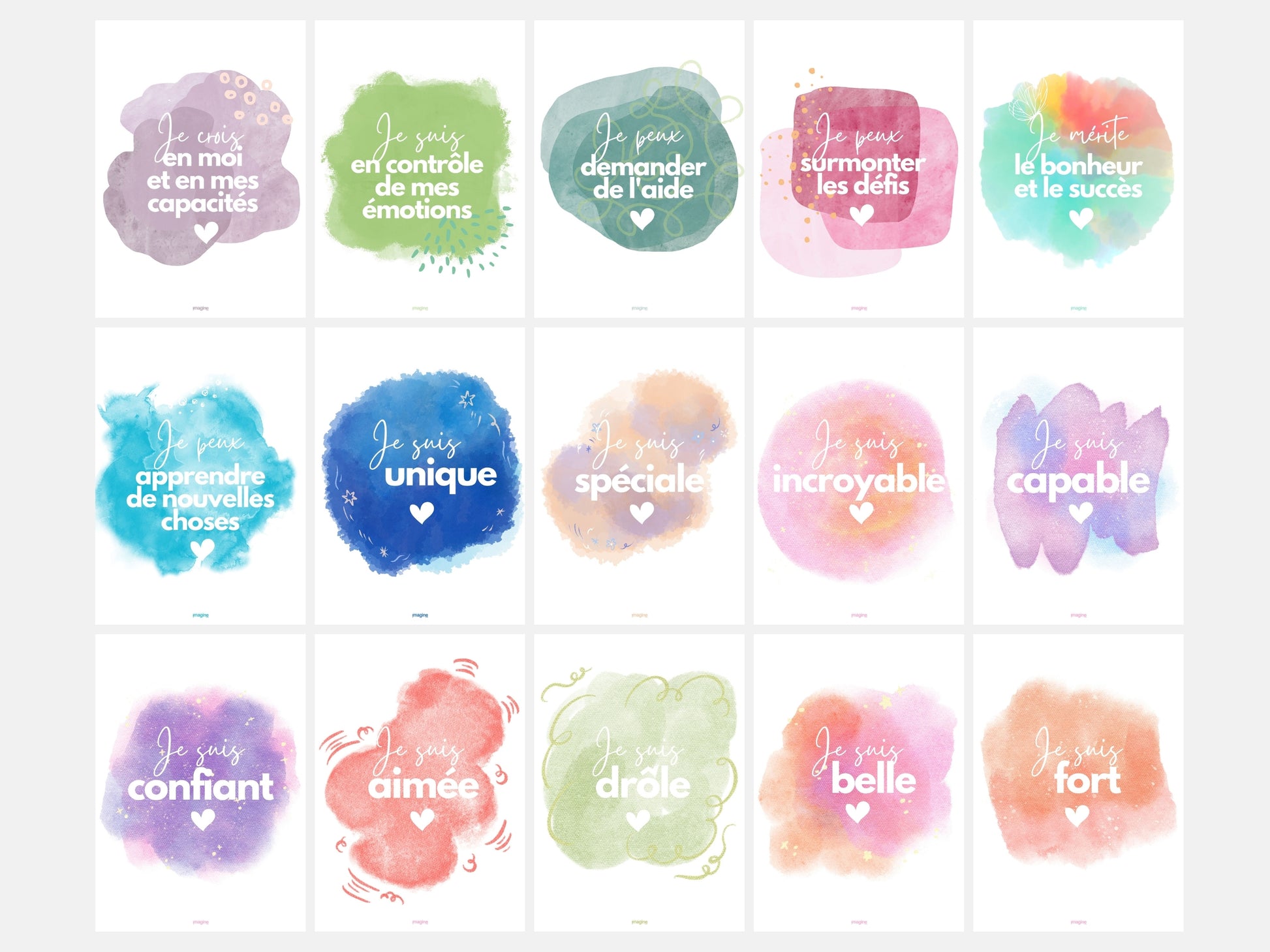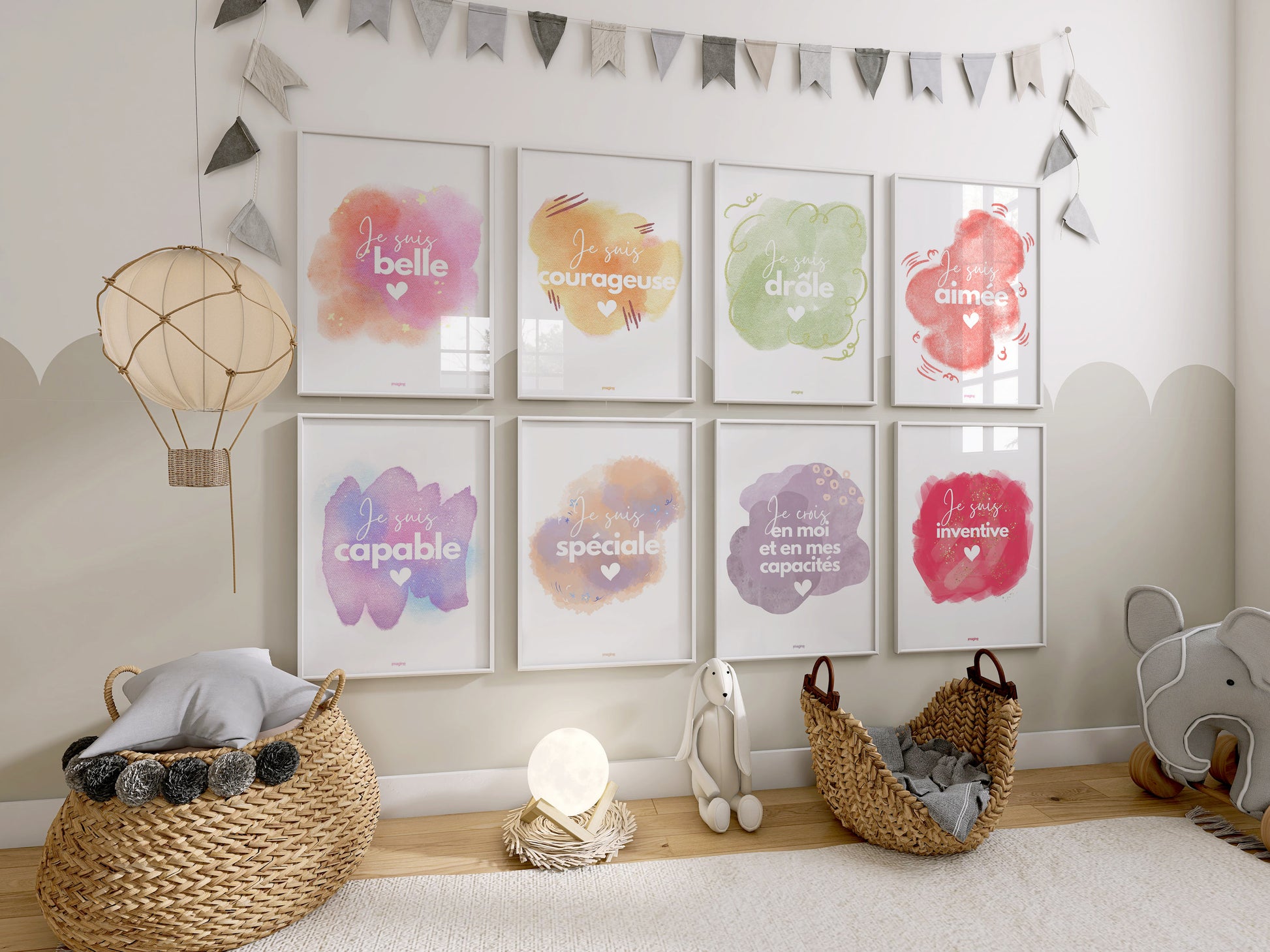Créez un environnement inspirant et bienveillant avec ma série d'affiches d'affirmations positives, conçues spécialement pour renforcer la confiance en soi des enfants et des adultes. Chaque affiche, avec une phrase positive telle que "Je suis beau" ou "Je suis intelligente", est un rappel quotidien des qualités uniques et précieuses de chacun.