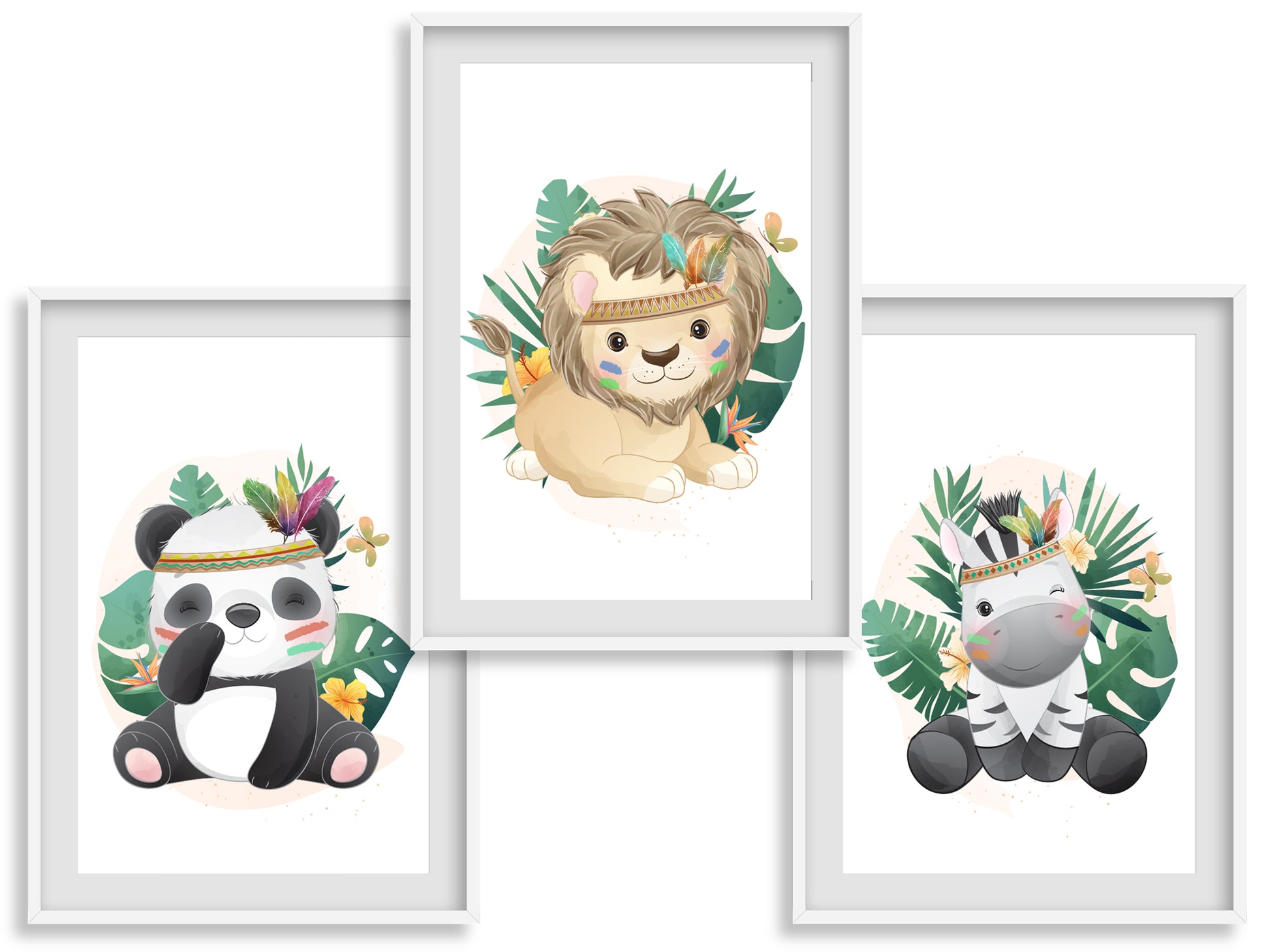 - Set de 3 affiches décoratives d'animaux de la jungle