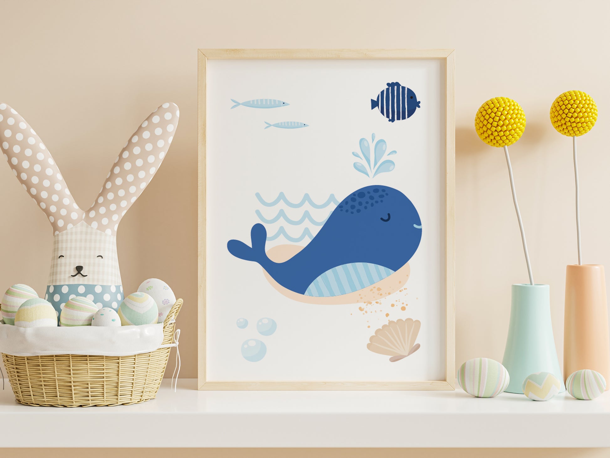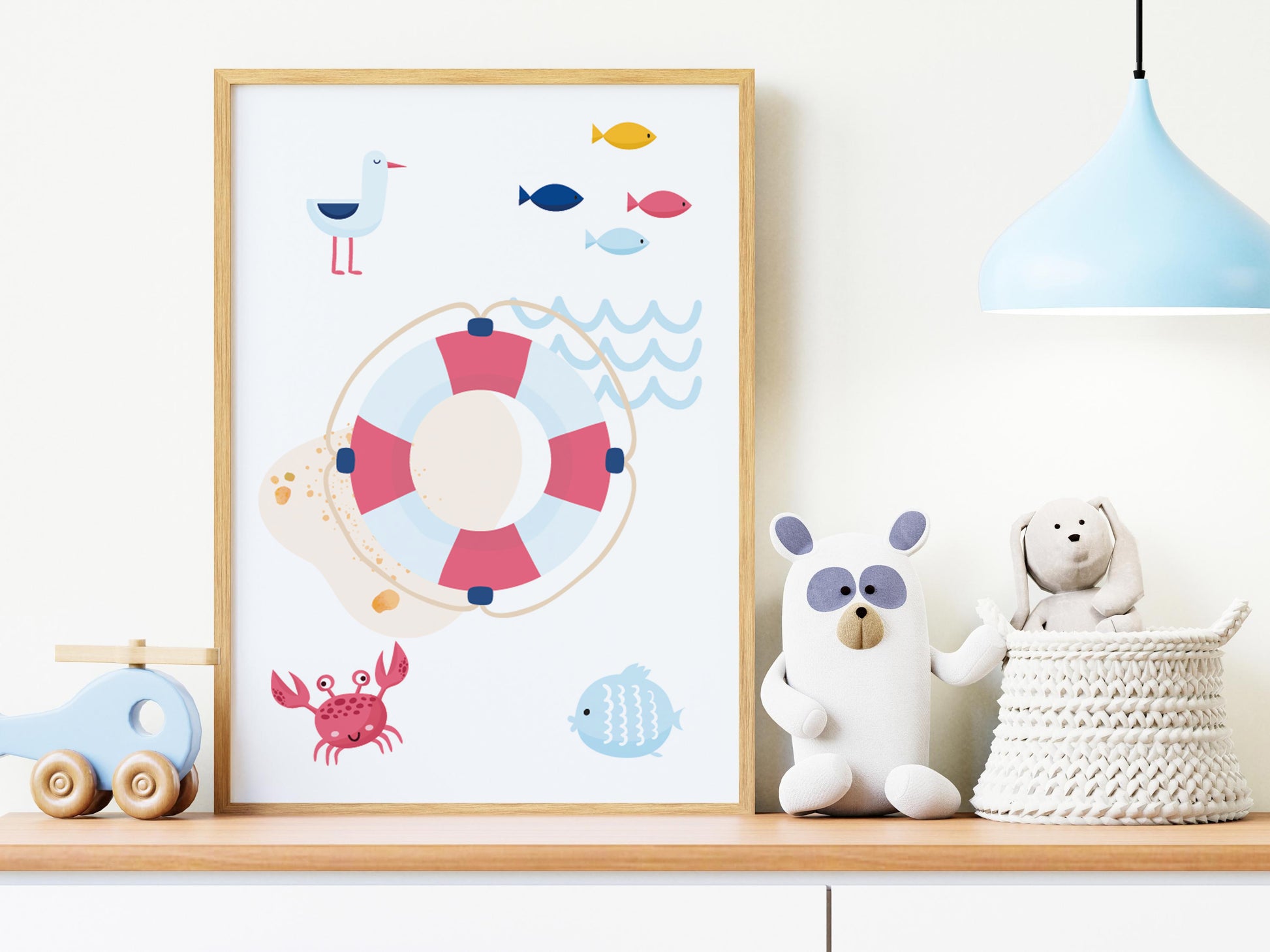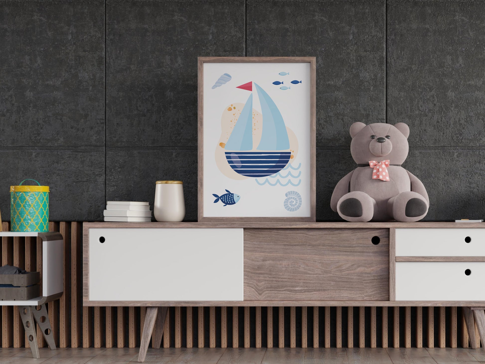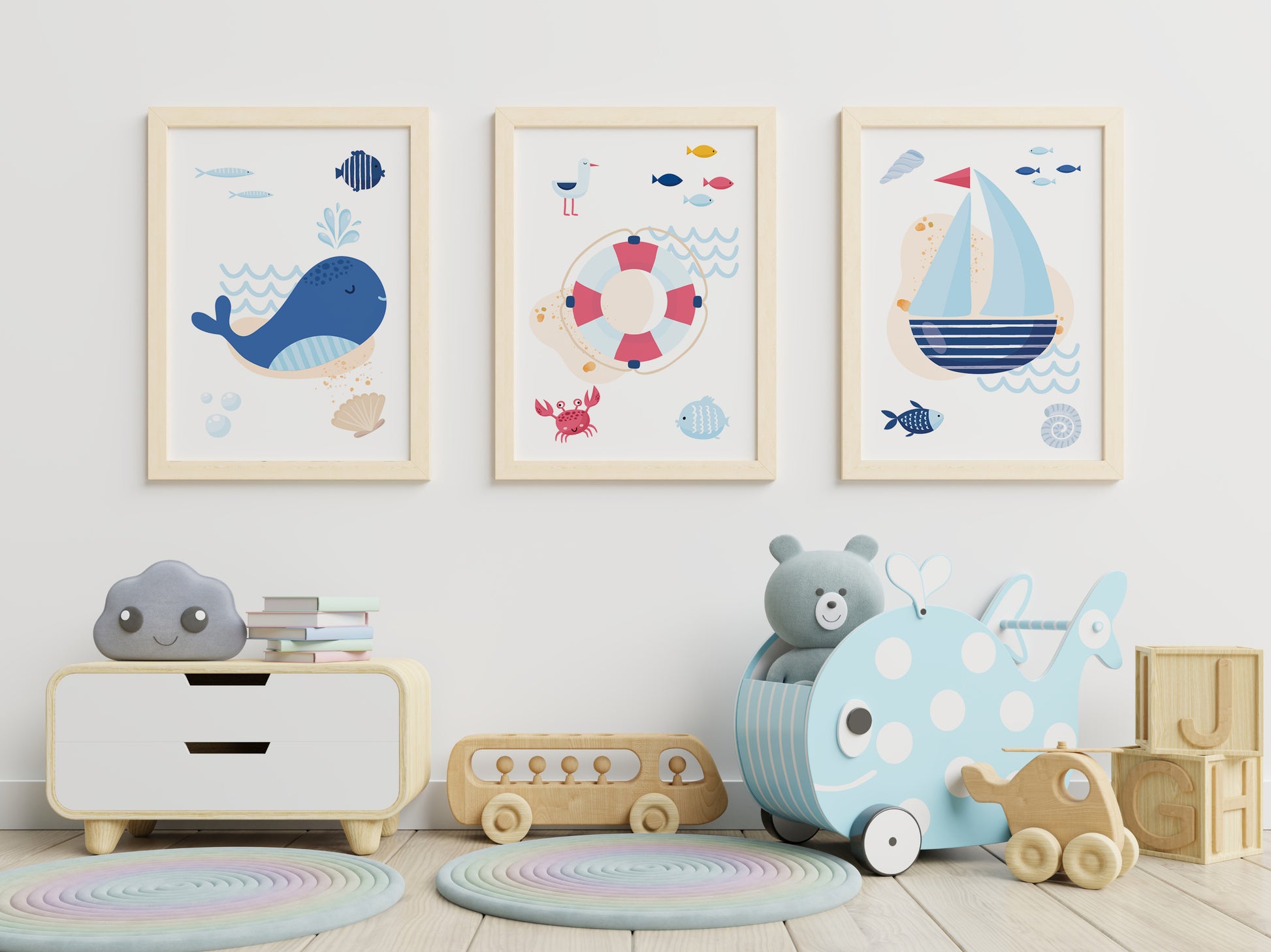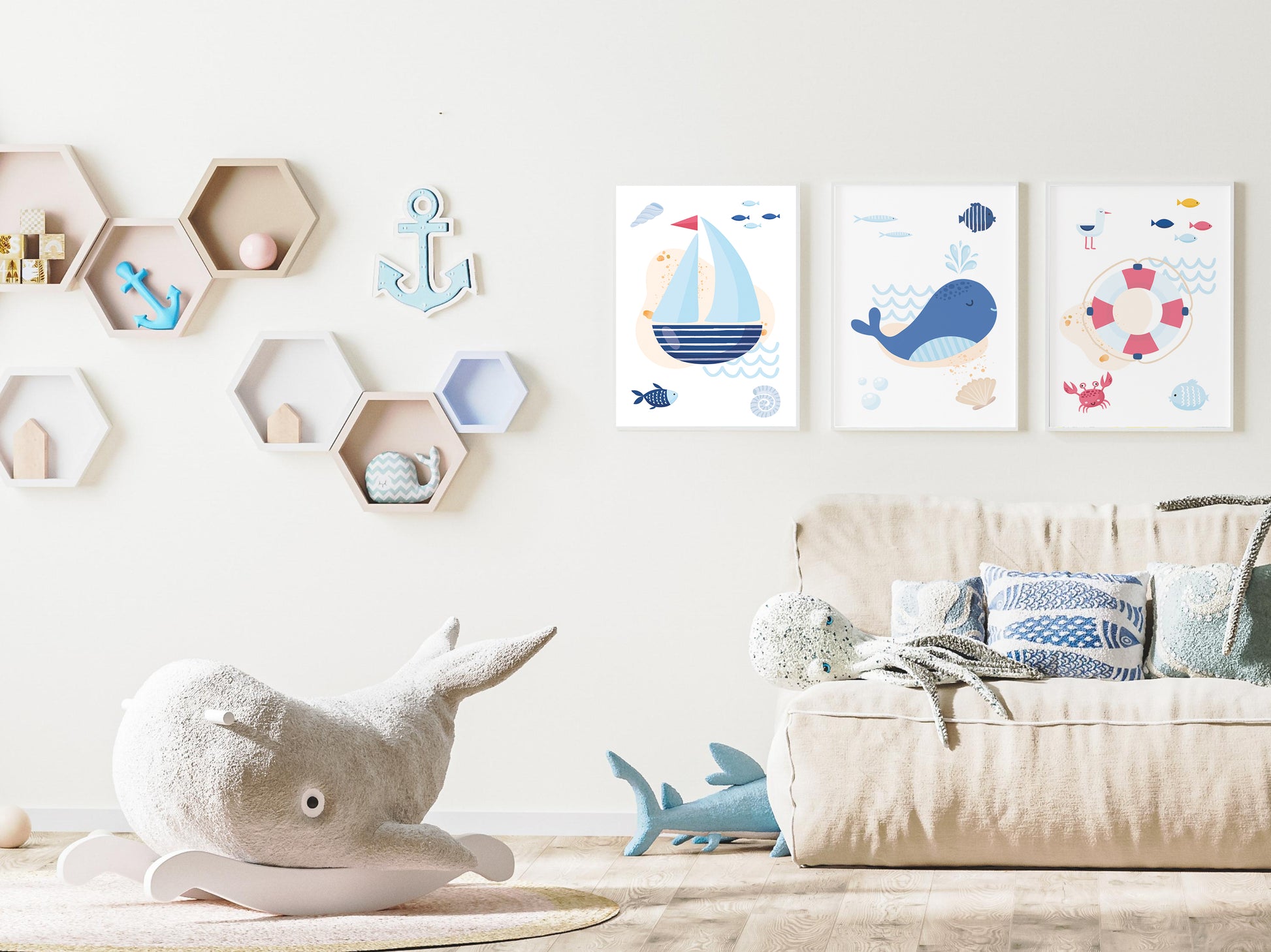 Posters sailor boat fish whale shell - 3 posters baby child room - Decoration - birth gift - ocean sea - bb deco ocean