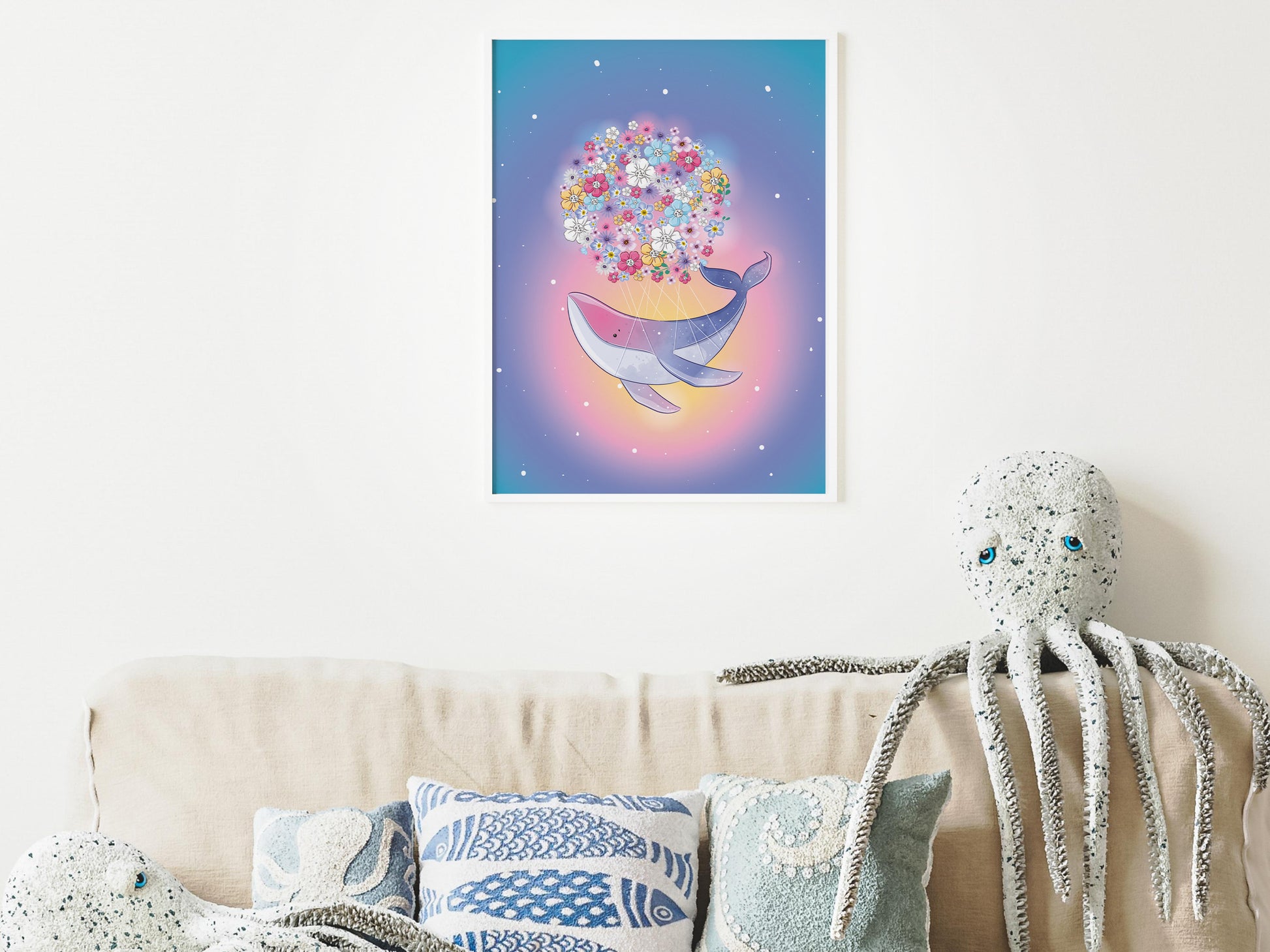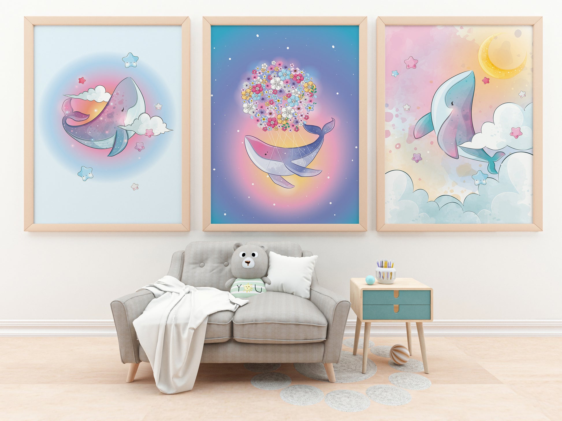 Les illustrations de la collection Baleine magique ont été soigneusement dessinées à la main, avec des détails délicats et des couleurs vibrantes. Chaque affiche est imprimée sur du papier de haute qualité pour garantir une qualité d'impression supérieure, résistante à la décoloration et aux rayures.