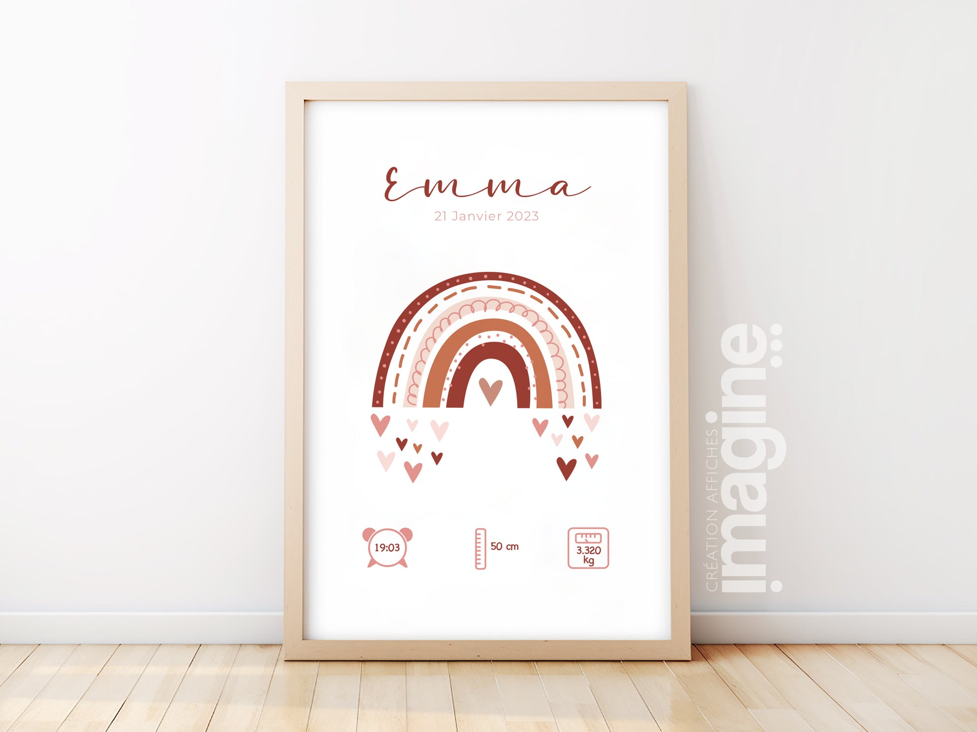 Personalized birth poster "Rainbow" old pink / terracotta