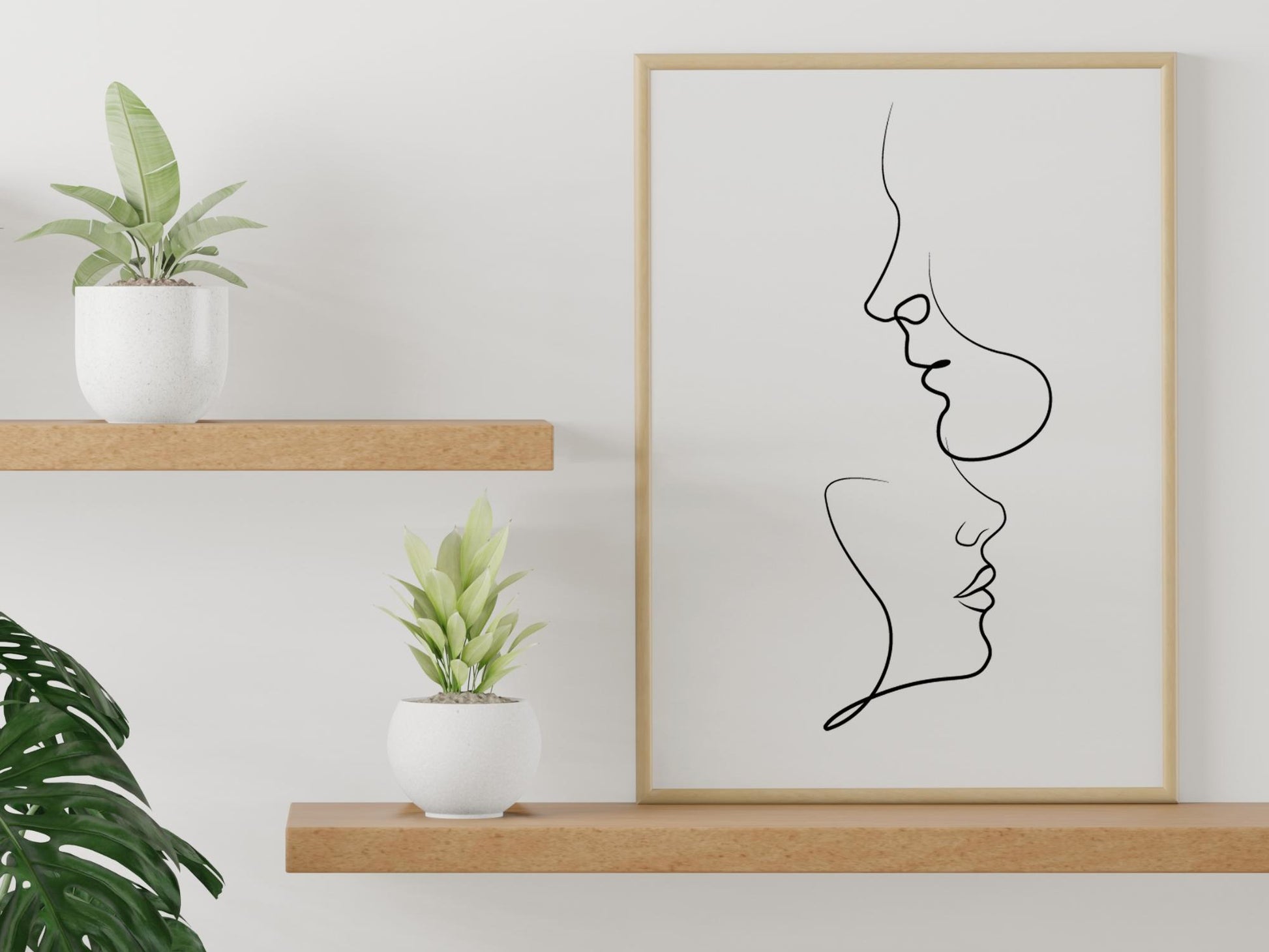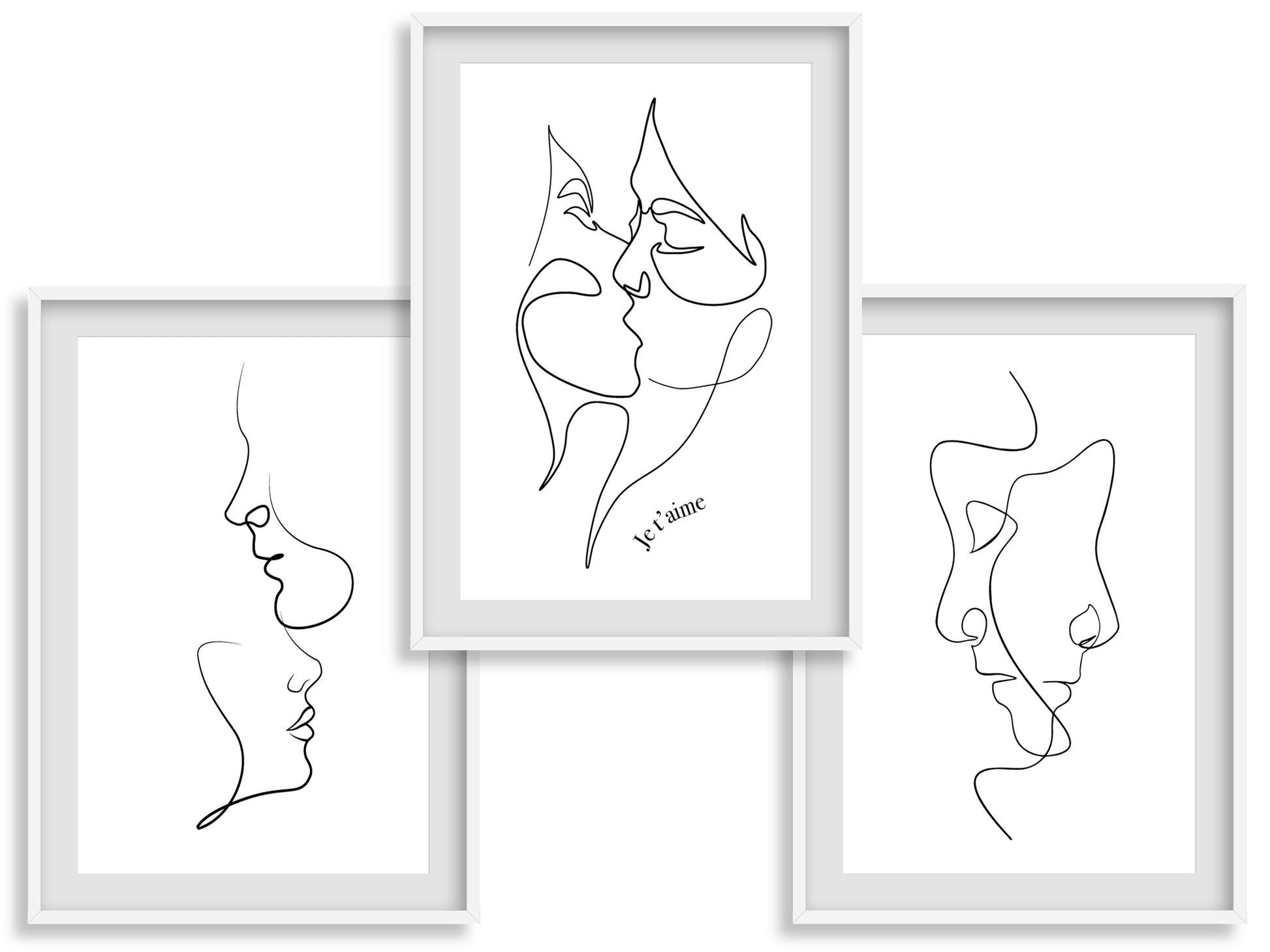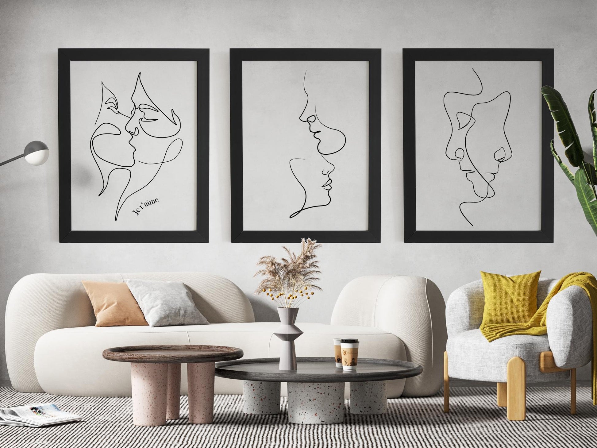 A creative motif for the decoration of a bedroom, an office or living room by a French artist who presents 3 Line art drawings on the couple, love. Line art is a single line illustration made by hand. An illustration for boys and girls in a modern theme and black and white printed design for cute posters. Because quality and your satisfaction is our priority, our products evolve with you and your feedback. If you have a suggestion or reason for complaint, please contact us directly before posting your review. We are committed to finding a satisfactory solution so that you are satisfied with your purchase. Our poster visuals are created by our artist / graphic designer, young mother and passionate about images with love and precision in order to offer you unique and quality products to allow you to create a decoration that meets your expectations. A universe focused on dreams and nature for colorful and cute patterns that will give a soothing and pleasant atmosphere to the room where you will display them.