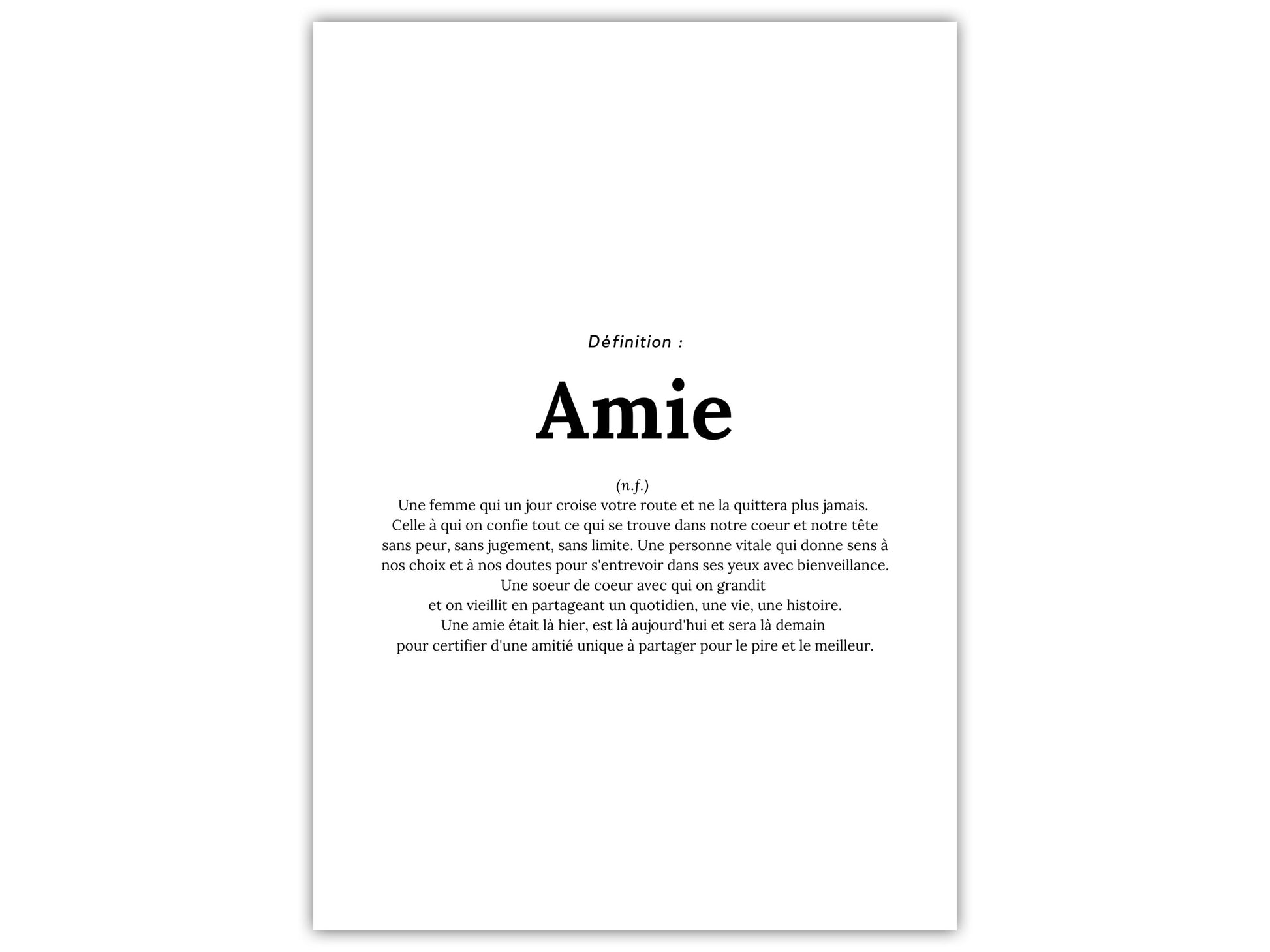 🌟 Célébrez l'amitié de manière unique et mémorable avec notre affiche personnalisée 'Définition Amie'. Parfaite pour offrir à votre meilleure amie lors d'un anniversaire, à Noël, ou simplement pour lui montrer combien elle compte pour vous.