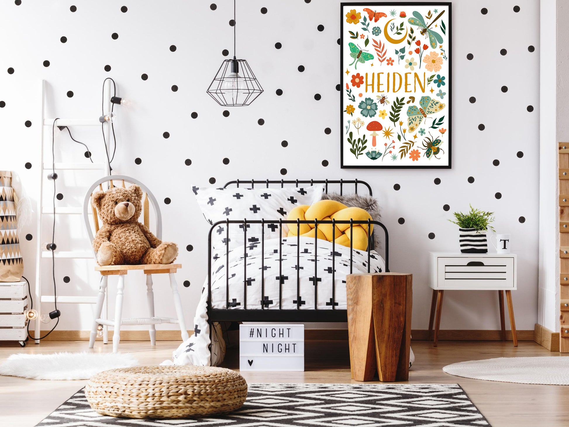 Accrochez l'affiche dans la chambre de votre enfant pour créer une décoration personnalisée et tendance. Cette affiche peut également être utilisée pour décorer la salle de jeux ou tout autre espace où vous souhaitez apporter une touche de personnalité.