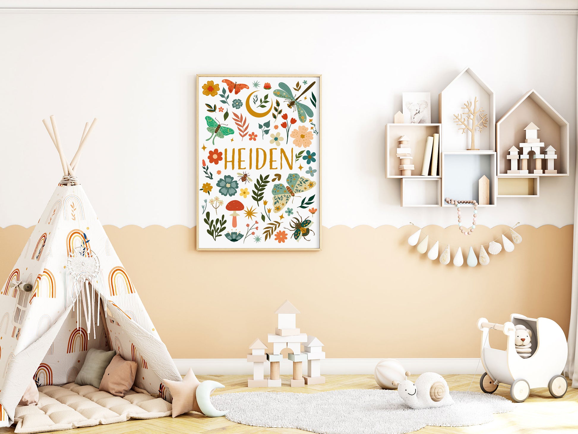 Affiche prénom personnalisable bohème et printemps