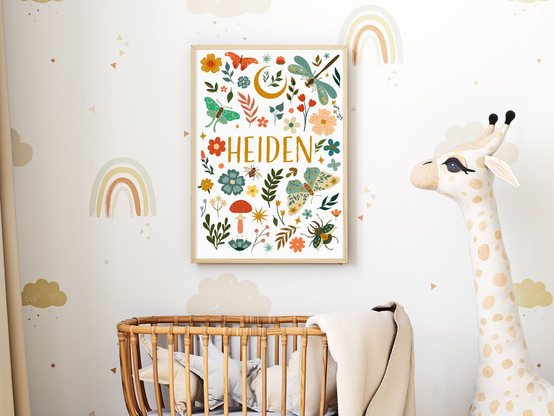 Découvrez cette magnifique affiche à personnaliser pour enfant au style bohème, avec des papillons, des libellules et de jolies fleurs. Cette affiche est un cadeau unique et personnalisé, qui conviendra parfaitement à toutes les occasions : naissance, anniversaire, baptême, ou simplement pour décorer la chambre d'un enfant qui vous est cher.