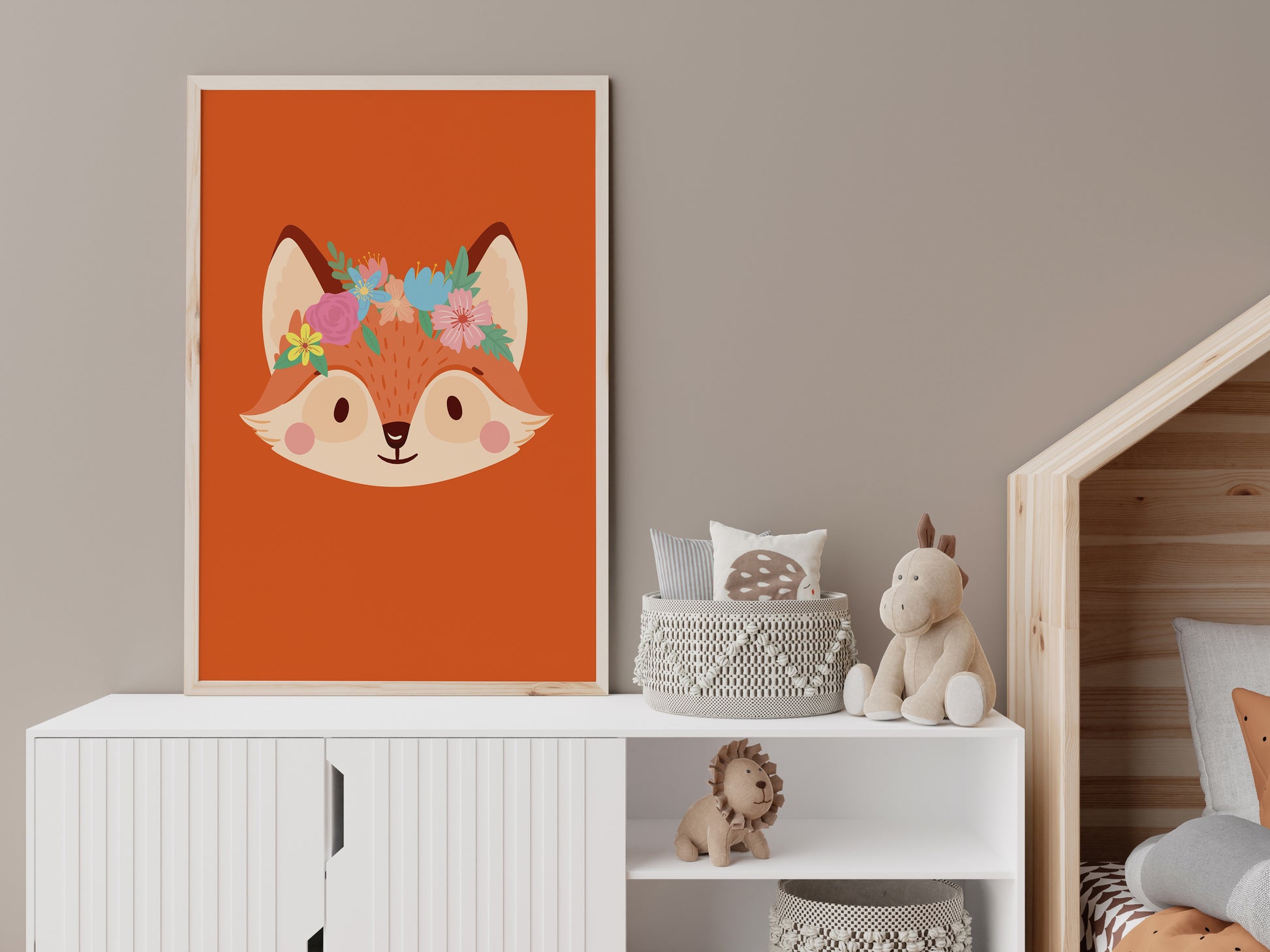 Un renard rusé, trop chou et romantique à la fois. Une affiche pour garçon ou fille dans des couleurs vives et chaleureuses pour une décoration unique. Composez vous-mêmes la décoration de la chambre ou de la salle de jeu de votre enfant / bebe.