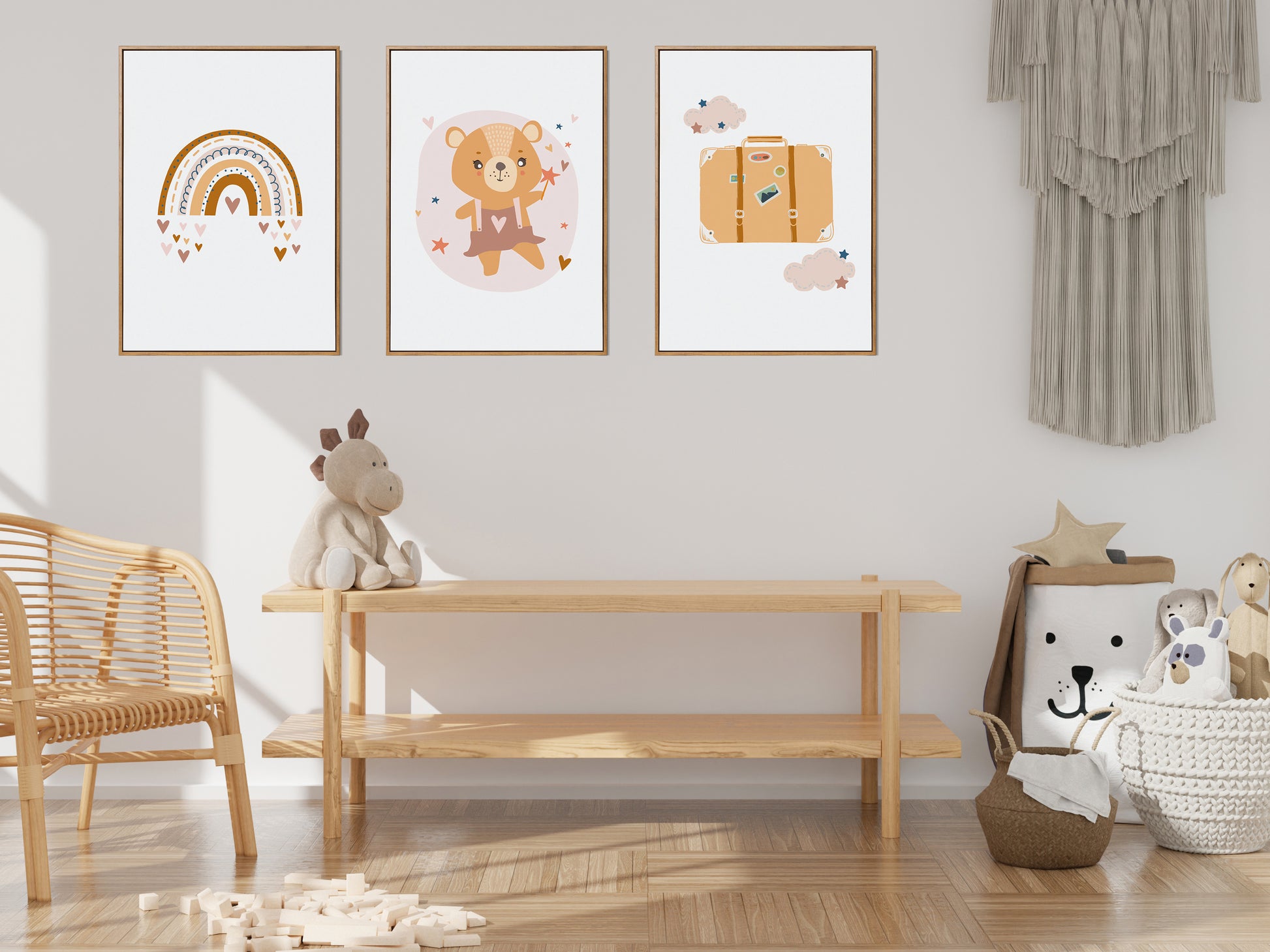Affiches oursonne arc en ciel voyage pour chambre d'enfant